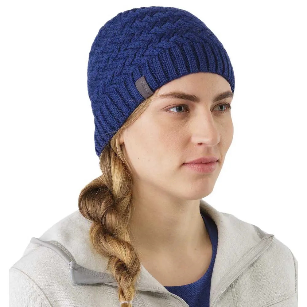 Lattice style waffle knit provides visual interest to this medium weight unlined toque in a form fitting silhouette.