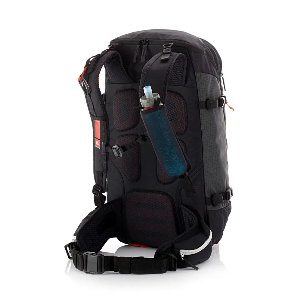 - Dedicated external pocket with convenient sleeves to stow your snow-safety gear.