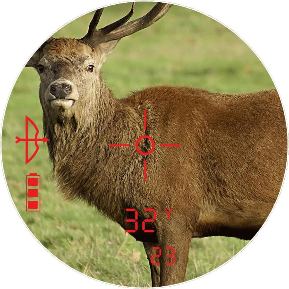 - Bow Mode - provides line-of-sight, angle, and true horizontal distance from 10-99 yards/meters