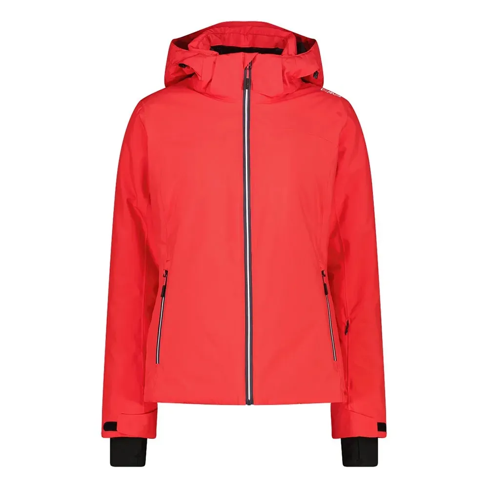 Twill ski jacket with fix hood padded with Feel Warm Flat, a special synthetic fiber that can keep the body warm even in wet conditions.