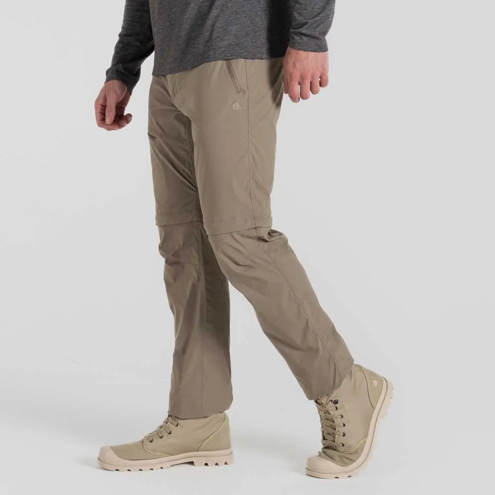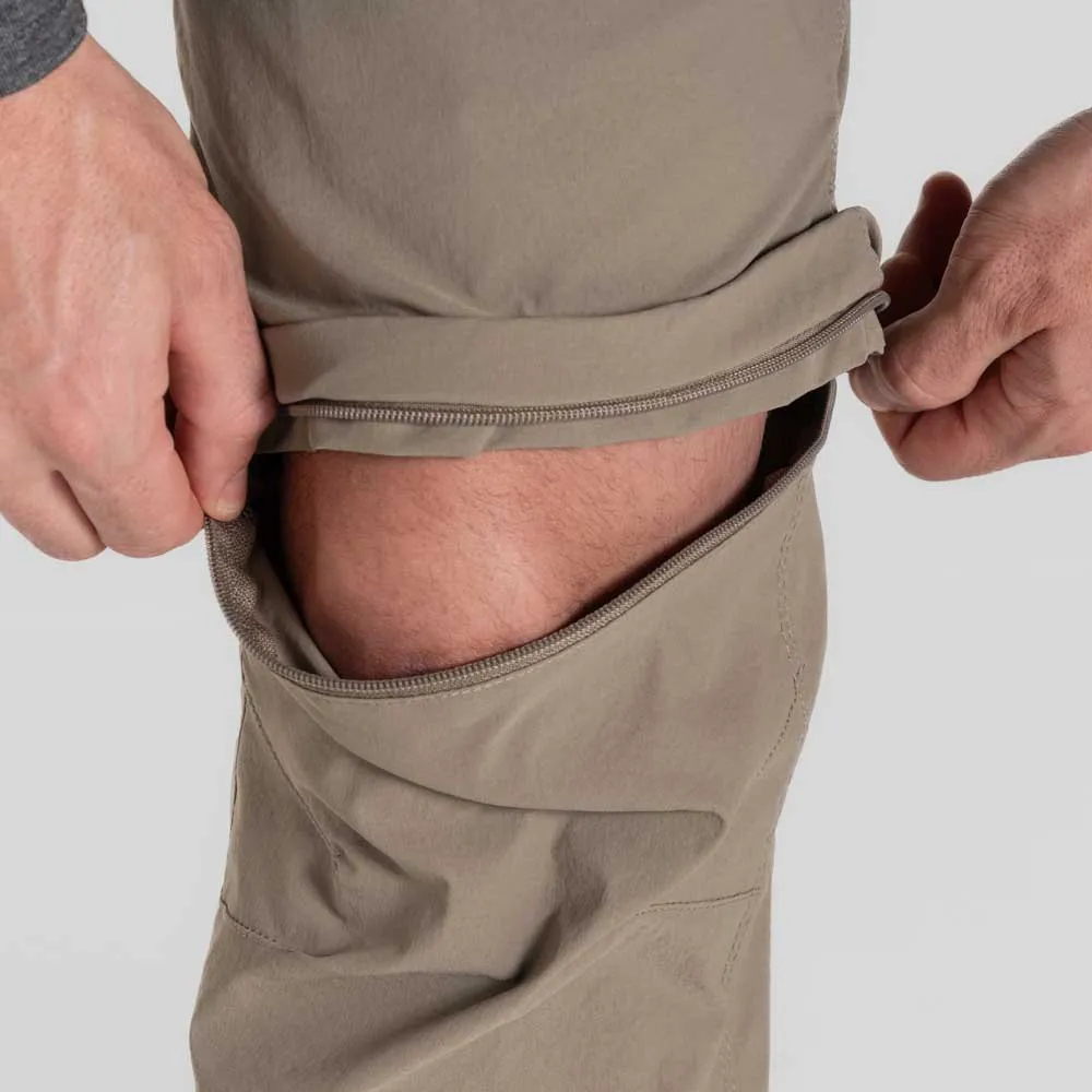 Experience ultimate versatility with the Craghoppers NosiLife Pro pants. These slim-fit trousers quickly convert to shorts at the flick of a zip, adapting to any climate. The full-stretch fabric ensures total freedom of movement on the trail while providing built-in NosiLife insect repellent, odour control, and UPF 50+ sun protection. Stay cool and dry with a wicking inner waistband, and keep valuables safe with RFID-blocking security pockets. Crafted from recycled materials, they are the perfect space-saving choice for any hot-weather adventure