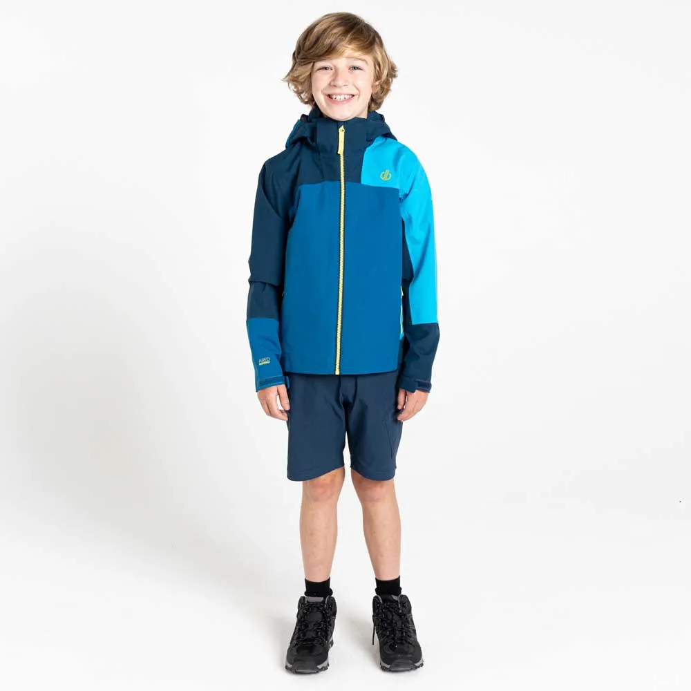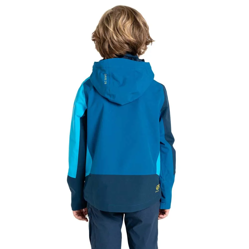 The Dare 2b Kid´s Explore II Jacket. Crafted from our market leading, recycled ARED 30/30 fabric, our most waterproof and breathable fabric ever made. The 30,000mm water column will keep your little ones dry even in the harshest weather and our 30,000 breathability rating provides unbeatable comfort and protection. A durable water repellent finish and fully taped seams shield from sudden downpours. Featuring technical hood and zipped lower pockets.