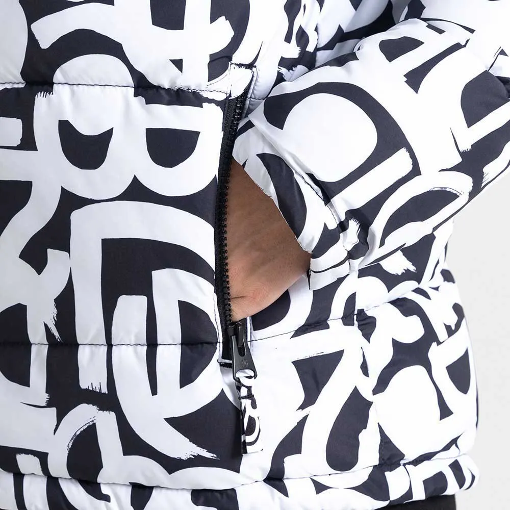 The Women´s Society Jacket. Crafted with a durable polyester and a showerproof finish, this stylish women´s jacket doesn´t compromise on weather protection. The cold won´t get a look in with the ILoft Ecofill, high-warmth padding. With graffiti-printed drawcords, the women´s padded jacket will keep you on-trend when in the great outdoors.