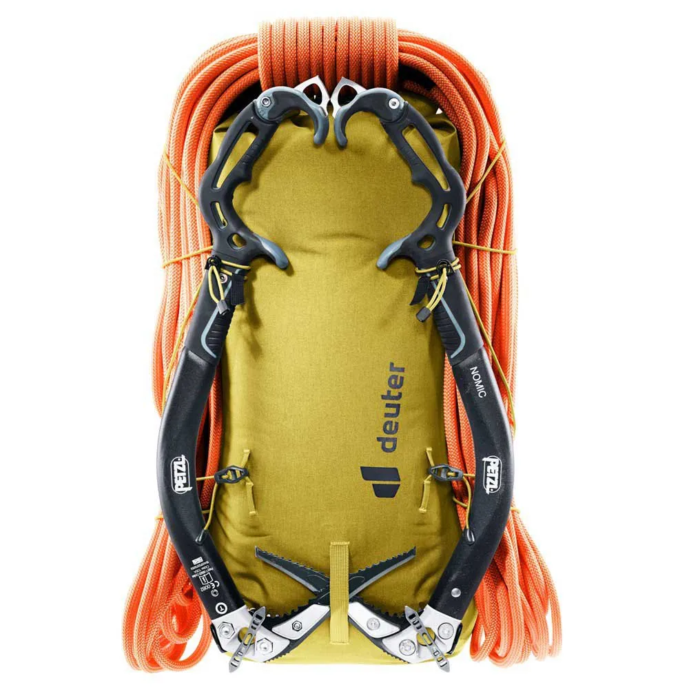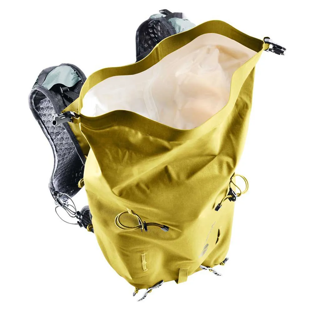 Push your limits on the mountain with the DEUTER Vertrail 16L. This ultralight (480g) alpine pack is fully waterproof, using a hard-wearing build, taped seams, and a roll-top lid to shield your gear. Its innovative vest-style shoulder straps and soft back material create a seamless, body-hugging fit for total freedom of movement on varied terrain. Stay agile with on-the-go access to essentials in the shoulder strap pockets and use versatile bungee cords for quick gear changes. Built for fast-paced pursuits, it´s the ultimate companion for when you´re moving fast and light