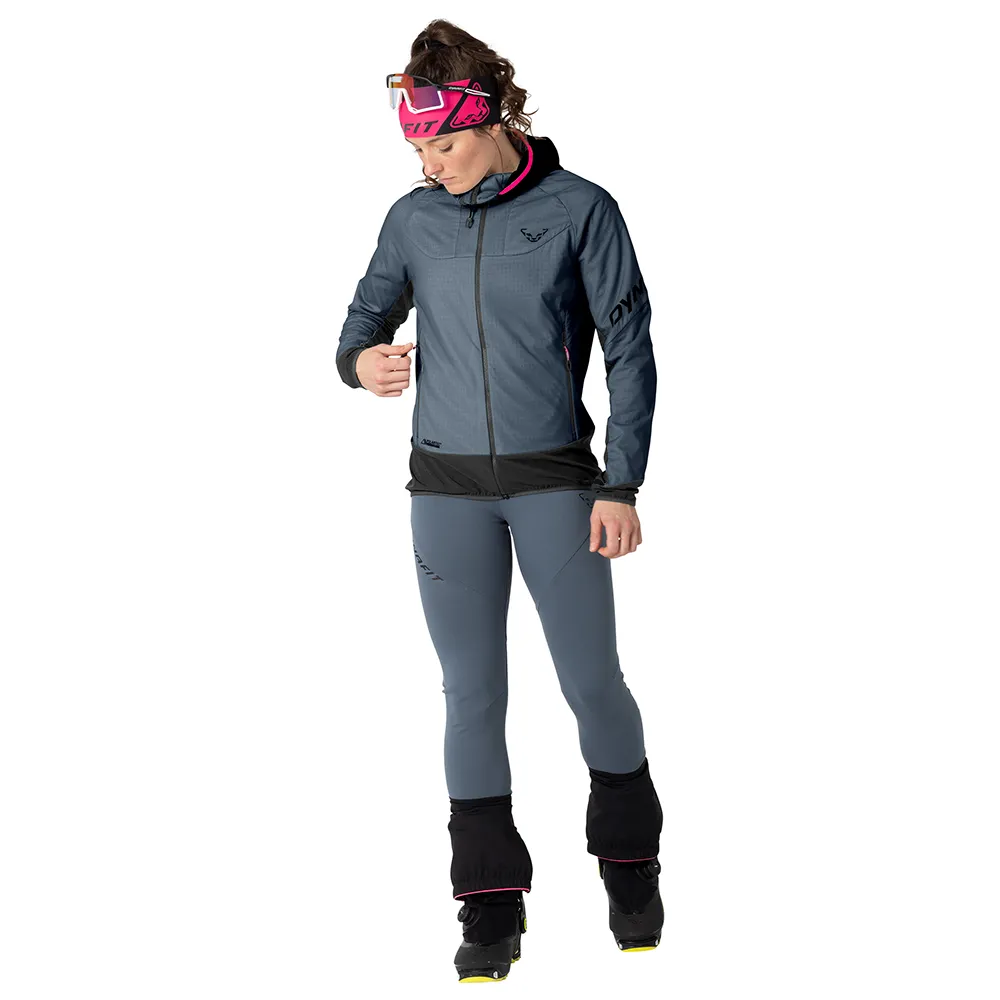 Light, very breathable jacket with Polartec® Alpha® insulation for mountaineering and for high-intensity winter activities. Technical, light and very breathable: The Mezzalama Polartec® Alpha® insulating jacket for women is the first choice for high-intensity activities and competitions. With this re-designed classic in the DYNAFIT ski touring collection, you are always a step ahead and ideally equipped to give it all you got in the colder months – be that for skimo races, ski touring or for mountaineering. When the going gets pretty intense, the Mezzalama Polartec® Alpha® jacket is right there for you. This high-performance jacket protects you reliably from the cold and scores high with its great breathability so you don’t overheat. The wind- and water-resistant outer shell prevents wind chill while the Polartec® Alpha® insulation regulates your body temperature optimally by dissipating excess heat. Where a backpack sits on your back, insulation has been replaced with a perforated, stretch fabric inset for extra breathability. The jacket offers a next-to-body fit and features stretch inserts for perfect form without slipping about with intense movement. Two front zip pockets offer space to carry small items such as a phone or snacks. A close-fitting hood and practical thumb loops round out the package. Mezzalama Polartec® Alpha® insulating jacket – highest performance for demanding athletes.