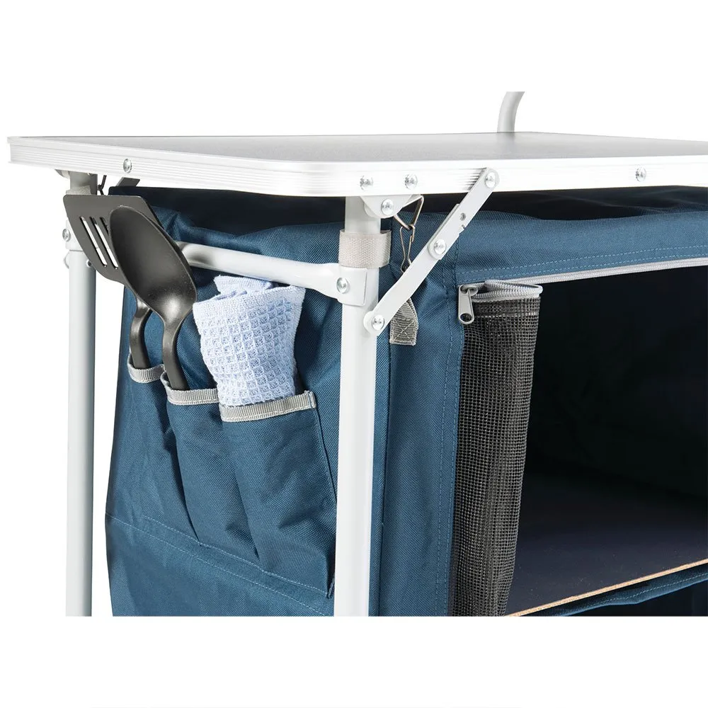 The Easy Camp Sarin kitchen table provides a stable platform for food preparation and cooking as well as the perfect place to store pots, pans, utensils and food close to hand.