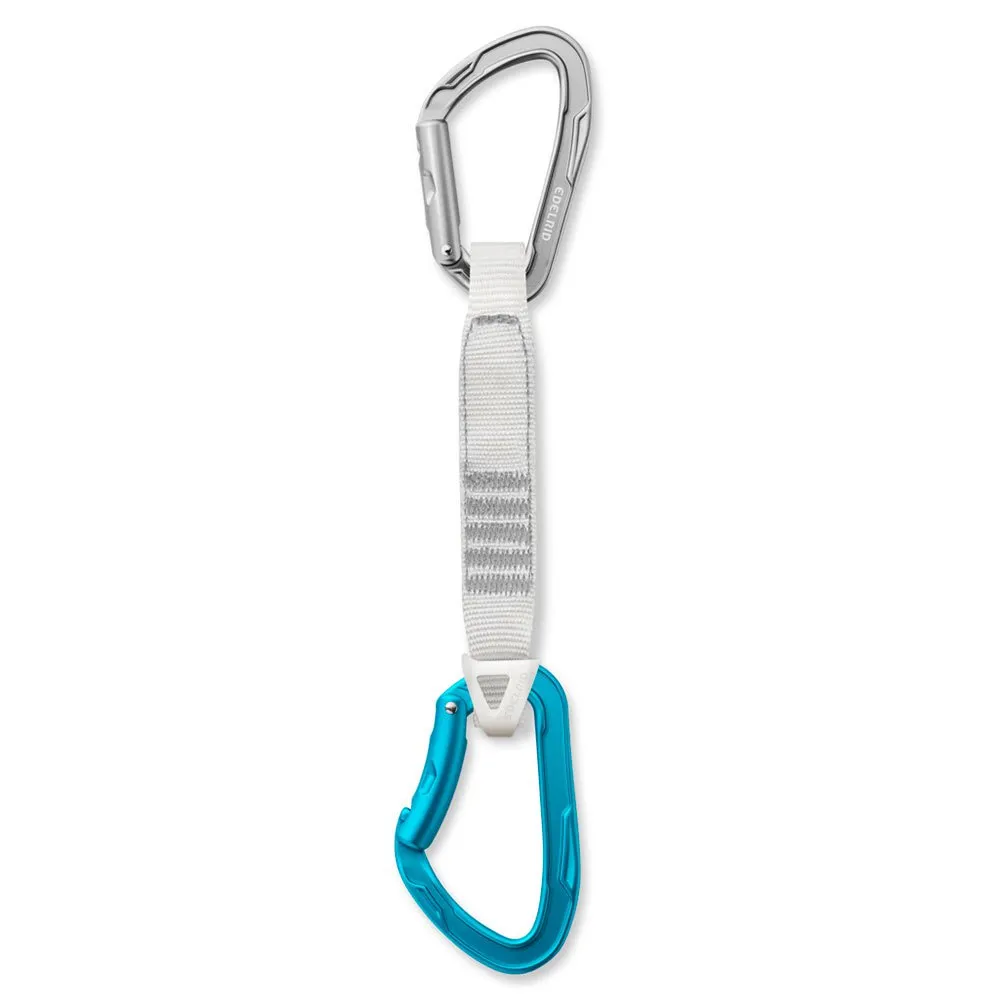 Experience ultralight performance with the EDELRID Mission II Quickdraw, engineered for demanding alpine and trad routes where every gram counts. Its intelligent design combines a snag-free keylock top carabiner with a lightweight, bent wire-gate bottom carabiner for fast, secure clipping. The H-profile construction delivers exceptional strength at a minimal weight, while an anti-twist sling keeps the rope-side biner perfectly oriented. The definitive choice for reducing your rack weight without sacrificing handling or safety on your most ambitious climbs