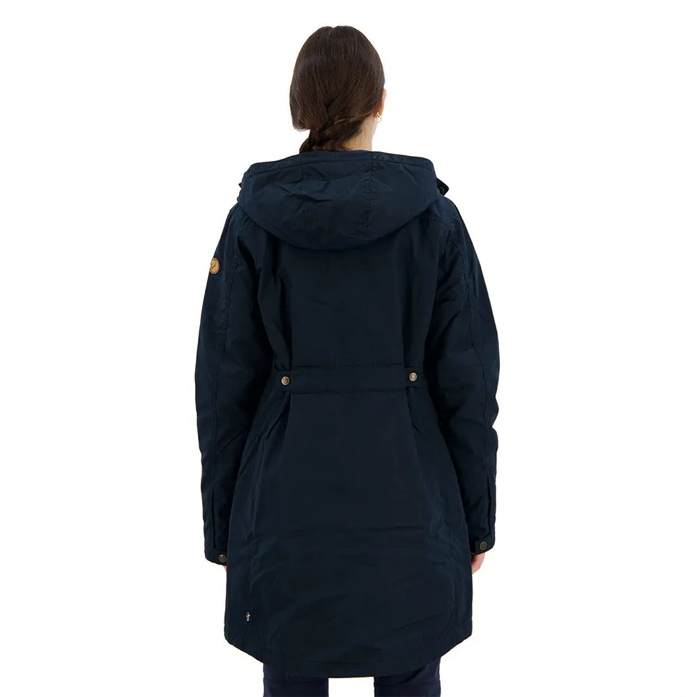 Embrace the colder months with the Fjällräven Kiruna Parka. This long, lightly padded parka is your perfect everyday companion, durable enough for forest walks. Its robust G-1000 Original shell resists wind and rain, while G-Loft Supreme synthetic padding provides reliable warmth, even when damp. A two-way zipper, adjustable hood, and multiple zippered pockets ensure functionality, while the long cut offers extra protection. For ultimate weather resistance, enhance it with Greenland Wax
