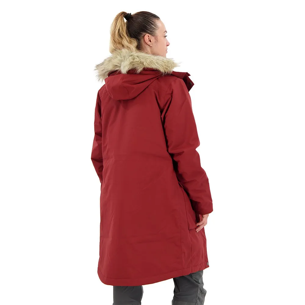A lightweight version of our best-selling Nuuk Parka, made for milder conditions. Its long, generous cut reaches down over the rear and thighs making it the perfect choice for damp and cold autumn days; it is waterproof, windproof and breathable so will protect against the wind and rain and the synthetic padding keeps the warmth in even in damp conditions. Drawcord at the waist and protective hood with detachable faux fur edging. Plenty of pockets for essential items including warm hand pockets at chest height. Two-way zipper with protective flap featuring press buttons sewn into webbing to make any repairs needed easy to carry out. Recycled polyamide shell and polyester padding.