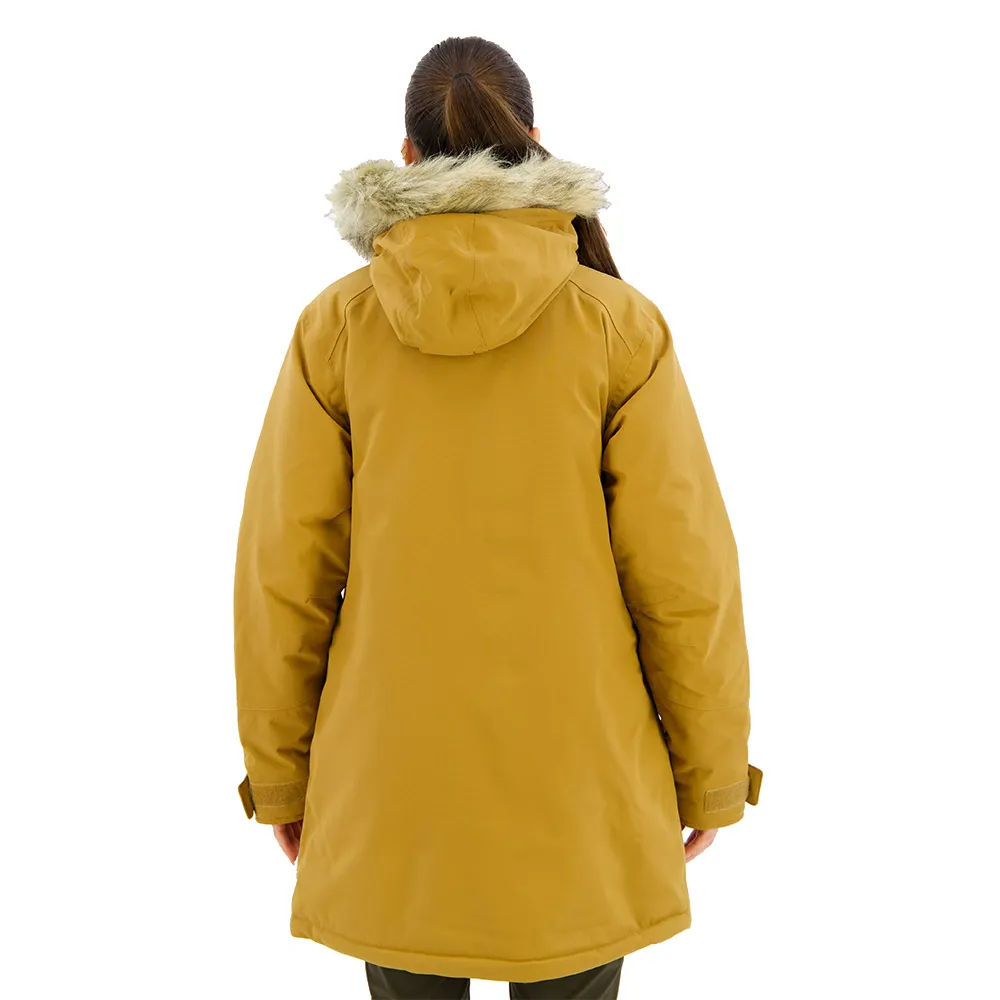 Brave the elements in the Fjällräven Nuuk Parka, a long, generous coat designed for ultimate protection in changeable weather. Its durable, recycled shell is fully waterproof and windproof, while synthetic padding keeps you warm even in freezing temperatures. A protective storm hood with detachable faux fur shields you from biting winds, and eight pockets offer ample storage for all your essentials. This updated classic, now with sustainable fabrics and an improved fit, is your perfect companion for conquering the cold in style and comfort