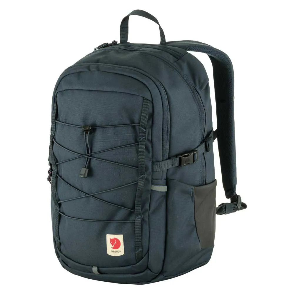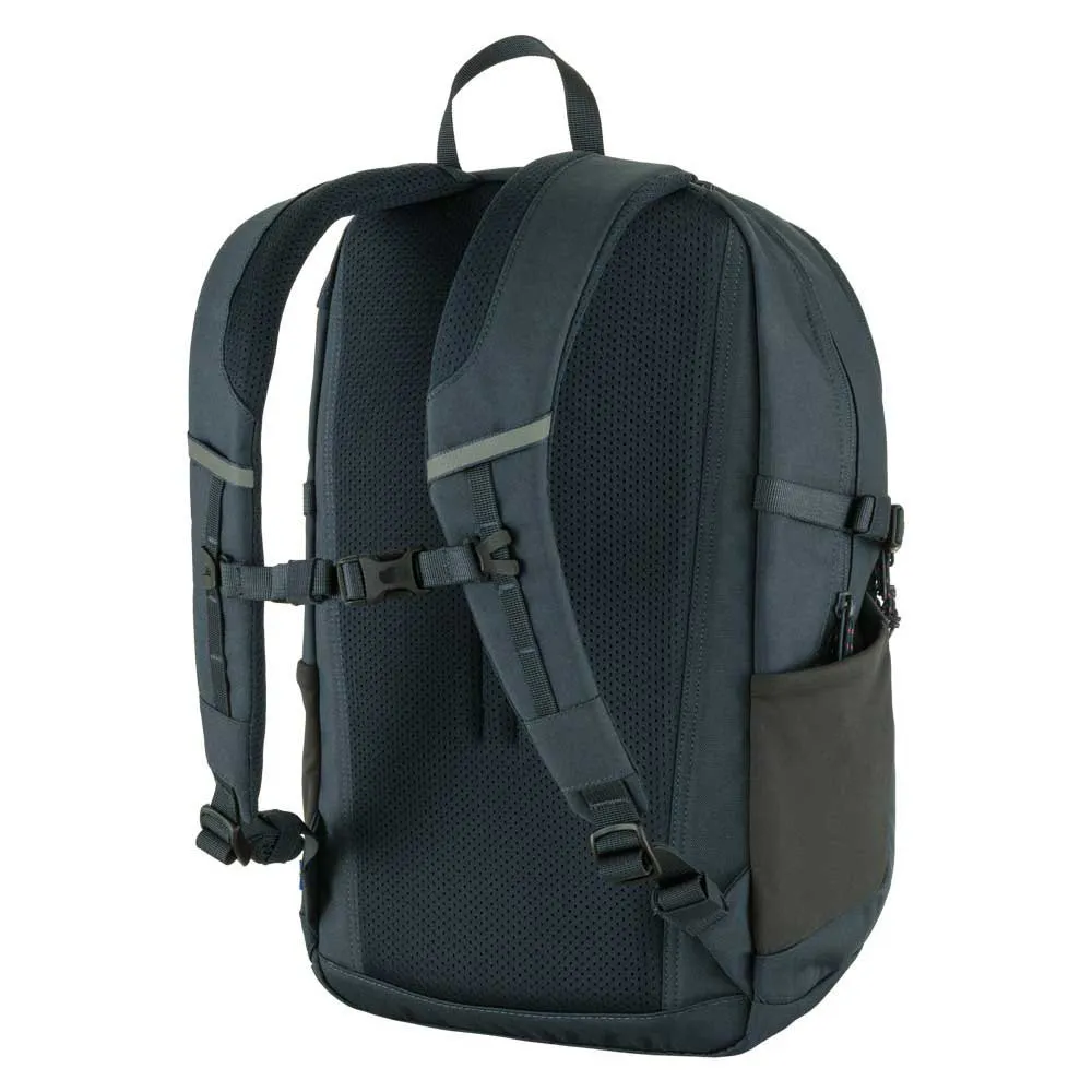 The smaller sibling of the Skule 28, this backpack is perfect for school, work or shorter day trips into nature. Features a main compartment with a raised, padded laptop sleeve, a front compartment with organiser pockets, and an easy-access zippered top pocket. Made of hardwearing, water-repellent Oxford fabric in recycled polyester. It also has a comfortable back panel with air mesh, padded shoulder straps and adjustable chest straps.