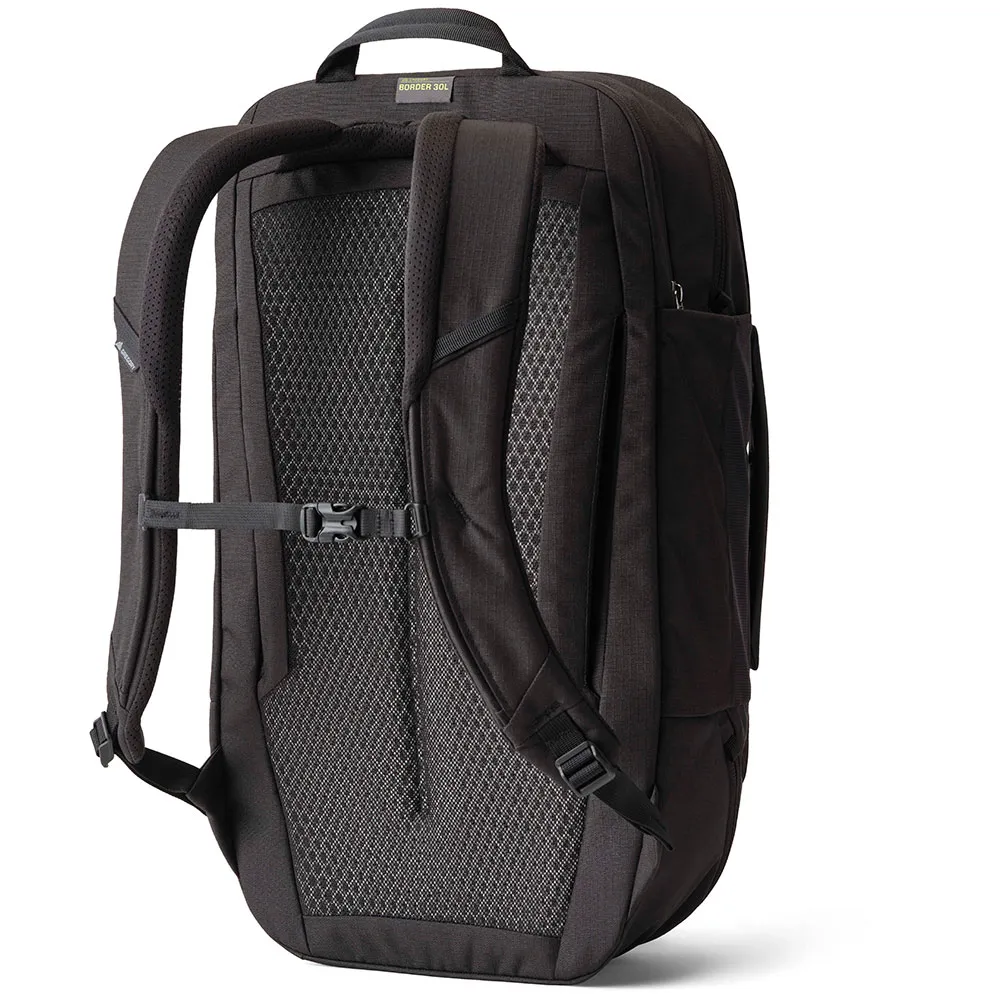 Meet the GREGORY Border 30L, your ultimate do-it-all travel companion. Perfect for weekend getaways or work trips, it offers smart, thoughtful organization to keep essentials accessible and secure. A dedicated padded sleeve protects your laptop and tablet, while the breathable AirCushion back panel ensures all-day comfort. Travel seamlessly with features like a luggage handle pass-through, split-case access, and an integrated AirTag holder. Built from recycled, PFAS-free materials, this pack is designed for life on the go. Pack light and do it all