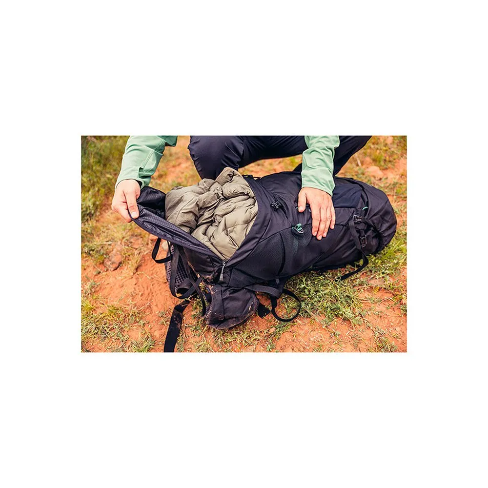 Built for the rigors of the outdoors, this pack includes an integrated, custom-fitted raincover that deploys quickly to protect your gear from sudden downpours. The dual trekking pole and tool attachment points with a bungee closure system ensure your essential equipment is always secure and within reach.