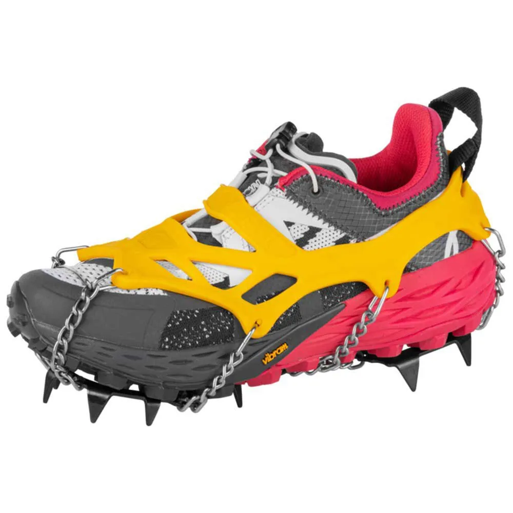 Explorer micro crampon is a sturdy and compact crampon, designed to be used in slippery terrain, with snow, ice, mud. Thanks to the shape of the rubber it adapts to many types of shoes and guarantees stability on the foot. 14 steel points with anti-corrosion treatment. Back lace to facilitate the fit. Supplied together with its zippered pouch. Available in four sizes (S-M-L-XL).
