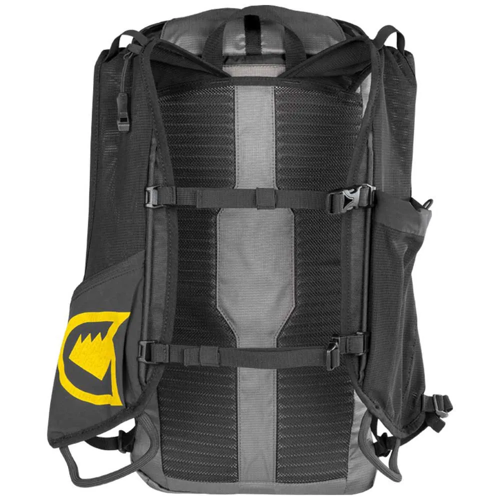 This minimalist pack is designed for fast-moving mountain activities. It was born from the fusion between an essential mountaineering pack and a trail running one, from which it derives the vest-style carrying system. The agile shoulder straps wrap the body in a very comfortable way, ensuring great freedom of movement especially during dynamic movements and a perfect ergonomic fitting, with optimal load control through close contact to the body.