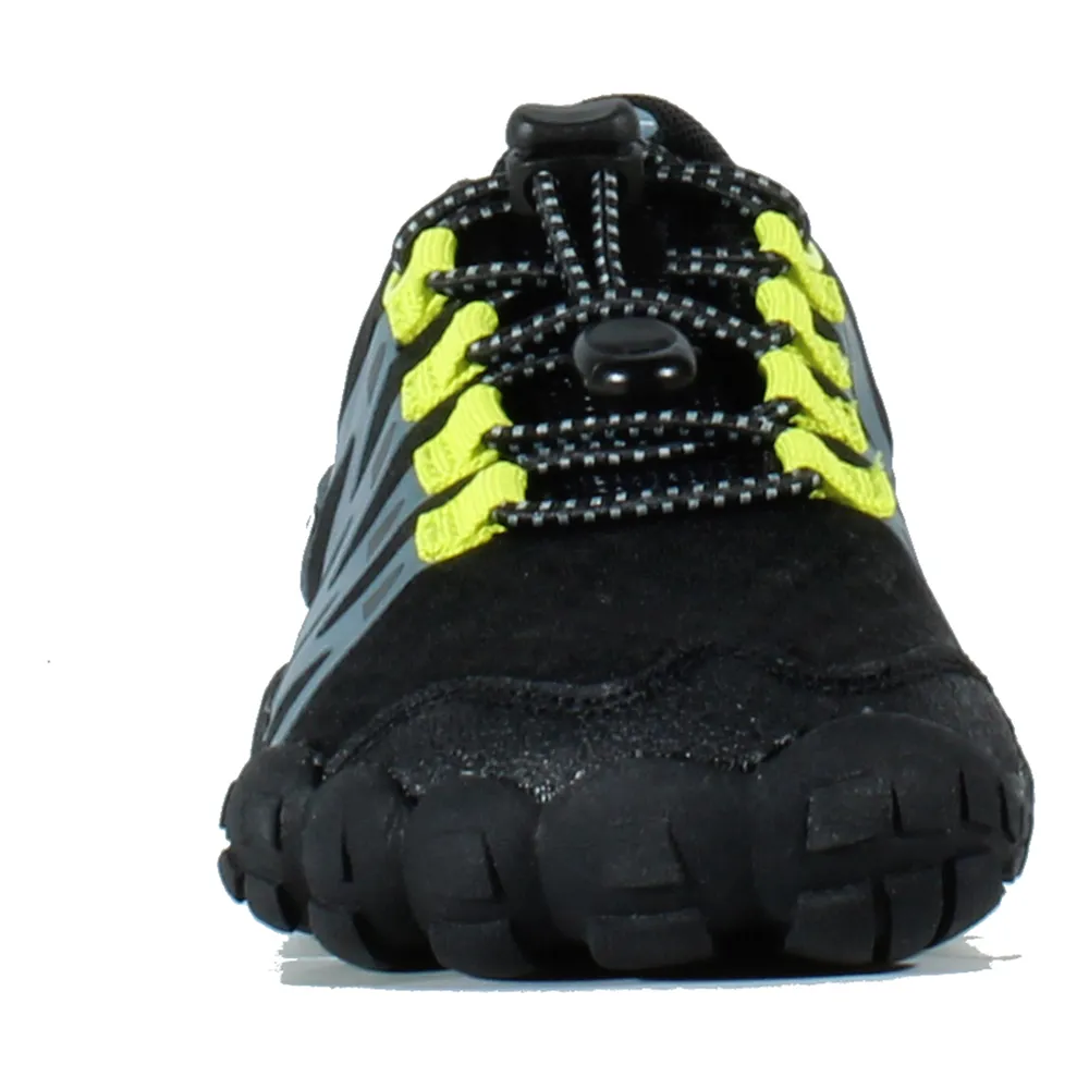 Crafted for ultimate versatility and performance, the Abyss features a highly breathable and quick-drying upper, ensuring feet stay comfortable and dry, even after a splash in the water. The lightweight construction means they won´t weigh him down, providing a feeling of unrestricted freedom. The secure and easily adjustable toggle closure system allows for a customized, snug fit that stays in place during activity, making them simple for boys to put on and take off by themselves. The durable, high-traction rubber outsole delivers exceptional grip and stability on a wide variety of surfaces, from slick poolside tiles to uneven backyard terrain, providing confidence with every step. The flexible sole design allows the foot to bend and adapt naturally to the ground, enhancing sensory feedback and balance.