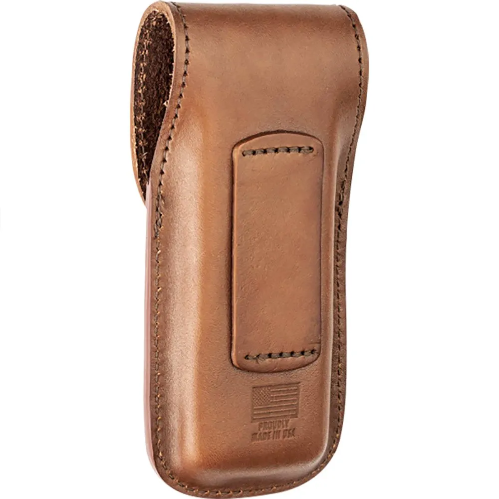 Heavy-duty stitching, premium leather, and a reinforced custom snap that provides added durability and integrity. Finished with a foil stamped logo. Show off your favorite tool with a Heritage Sheath.The premium leather Heritage Sheath has been engineered for high performance and built to last. Sheath has a foil stamped logo and custom snap.