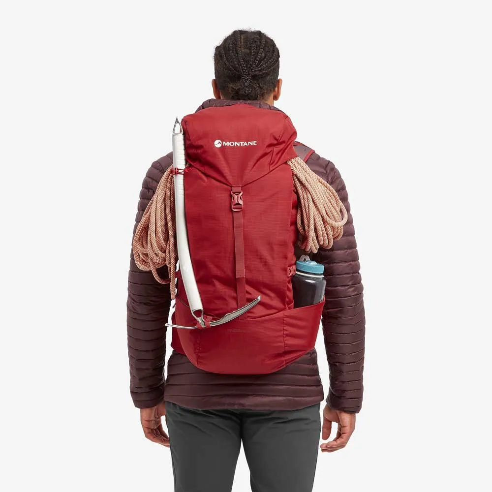 Fast and light missions in the mountains are made more efficient by the modular, easy-to-access storage and secure attachment for an ice axe or walking poles. The new Montane T-Hook system provides lightweight adaptability by allowing you to re-configure your pack on the fly.