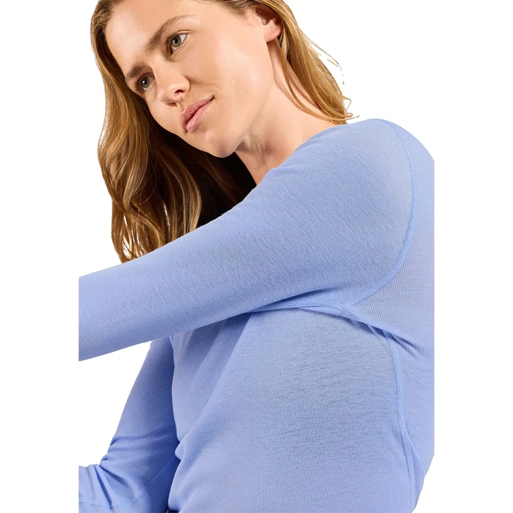A sustainable design with ergonomic raglan sleeves for improved range of motion in sports that range from skiing to hiking, embrace the elements in this women?s Active Warm long sleeve base layer top from ODLO.