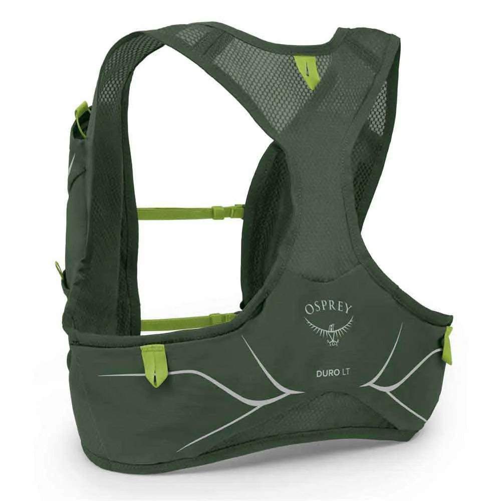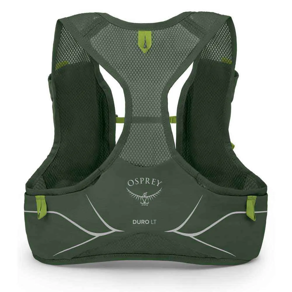 Overall, the OSPREY Duro LT Hydration Vest in Seaweed Green / Limon is a reliable and stylish hydration vest that combines functionality, comfort, and durability. It is an ideal choice for outdoor enthusiasts looking for a compact and lightweight hydration solution to accompany them on their adventures.