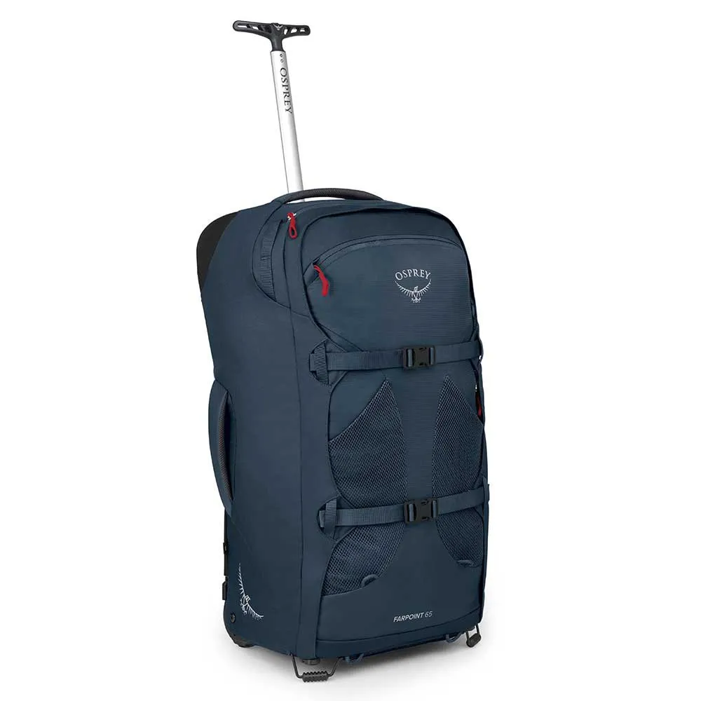 Ready for any destination, the OSPREY Farpoint Wheels 65L is your ultimate two-in-one travel solution. Glide through terminals on its rugged, oversized wheels, then instantly convert it to a comfortable backpack with the stowaway harness and hipbelt when the terrain demands it. A large front-panel opening and internal compression wings make packing simple and secure. Crafted from lightweight, high-tenacity nylon, this durable pack is built to last a lifetime. For added versatility, it’s Daylite® compatible, letting you attach a daypack for local adventures