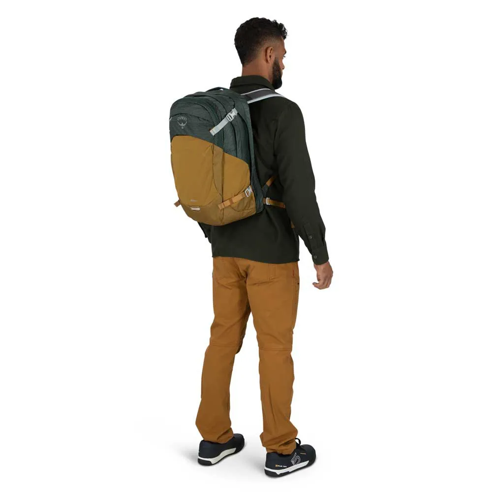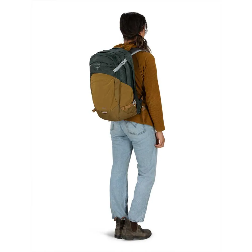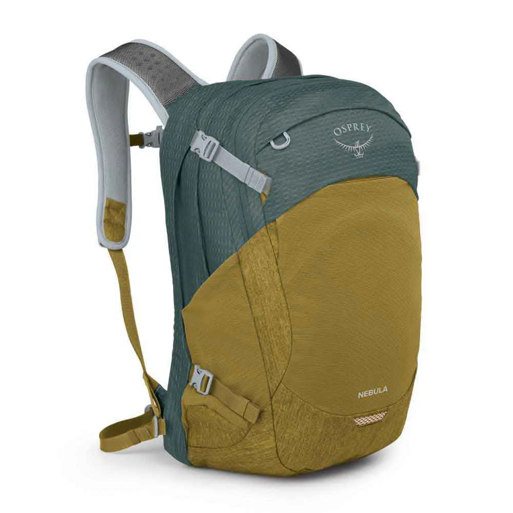 The OSPREY Nebula Backpack in Green Tunnel/Brindle Brown is a versatile and stylish backpack perfect for everyday use or travel. The backpack features a spacious main compartment with a padded laptop sleeve, as well as multiple zippered pockets for organization. The padded shoulder straps and back panel provide comfortable carrying, while the sturdy construction and durable materials ensure long-lasting durability. Whether you're commuting to work, heading to class, or exploring a new city, the OSPREY Nebula Backpack is a reliable and practical choice for all your carrying needs.