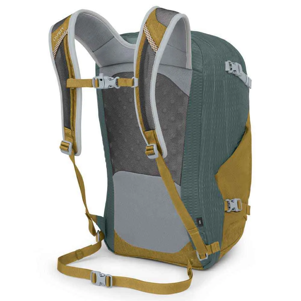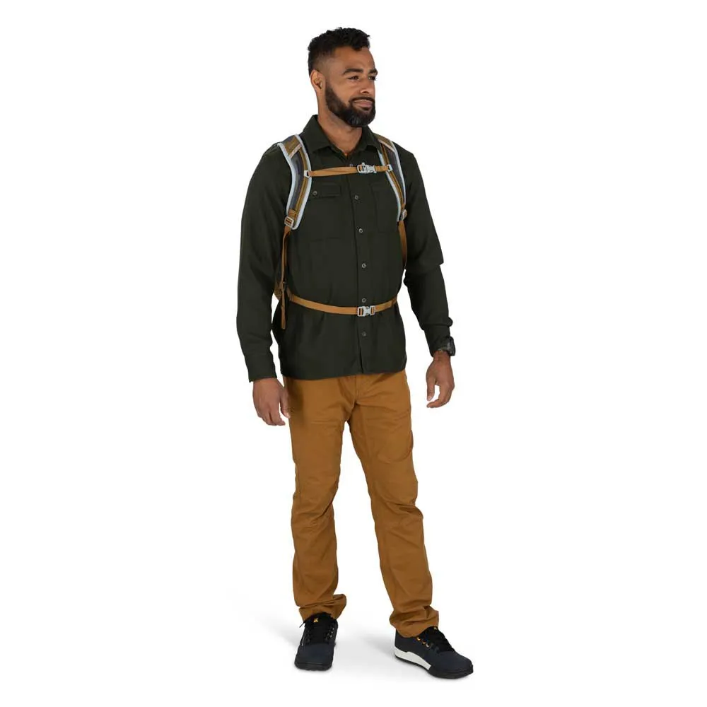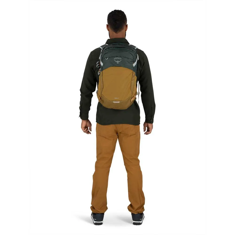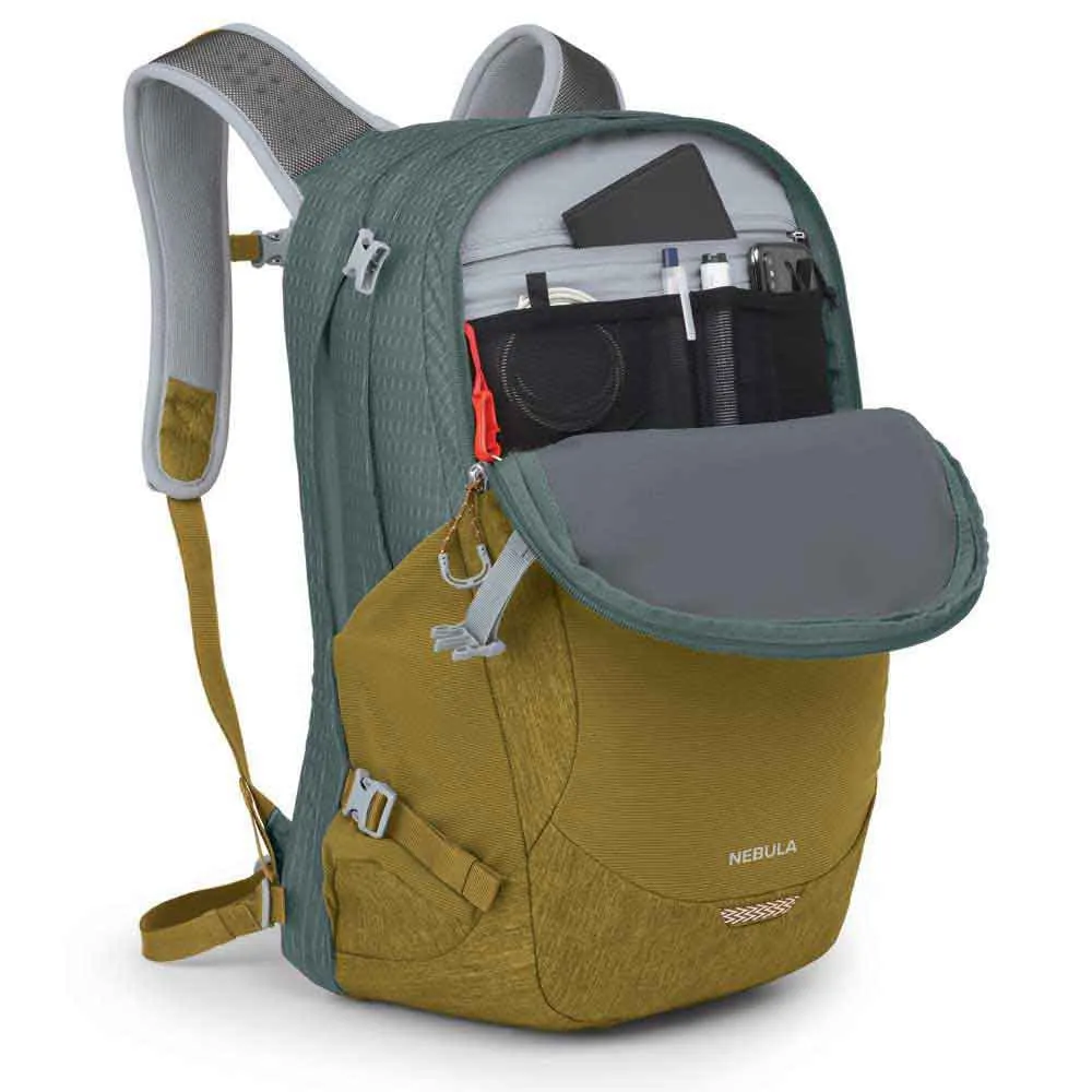 The OSPREY Nebula Backpack in Green Tunnel/Brindle Brown is a versatile and stylish backpack perfect for everyday use or travel. The backpack features a spacious main compartment with a padded laptop sleeve, as well as multiple zippered pockets for organization. The padded shoulder straps and back panel provide comfortable carrying, while the sturdy construction and durable materials ensure long-lasting durability. Whether you're commuting to work, heading to class, or exploring a new city, the OSPREY Nebula Backpack is a reliable and practical choice for all your carrying needs.