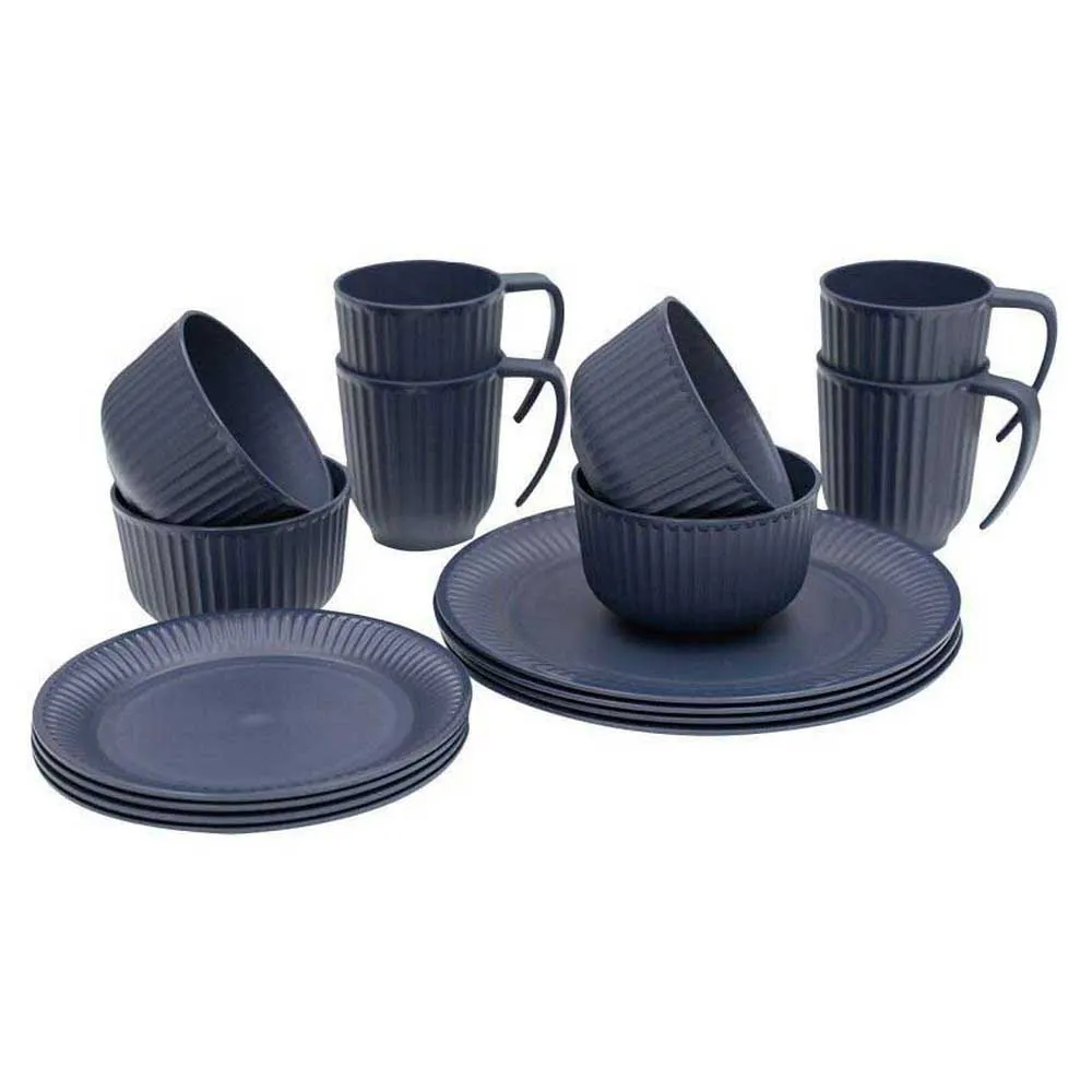The Delish 4 Person Dinner Set Navy Night is a perfect combination of style and durability for outdoor dining or camping.