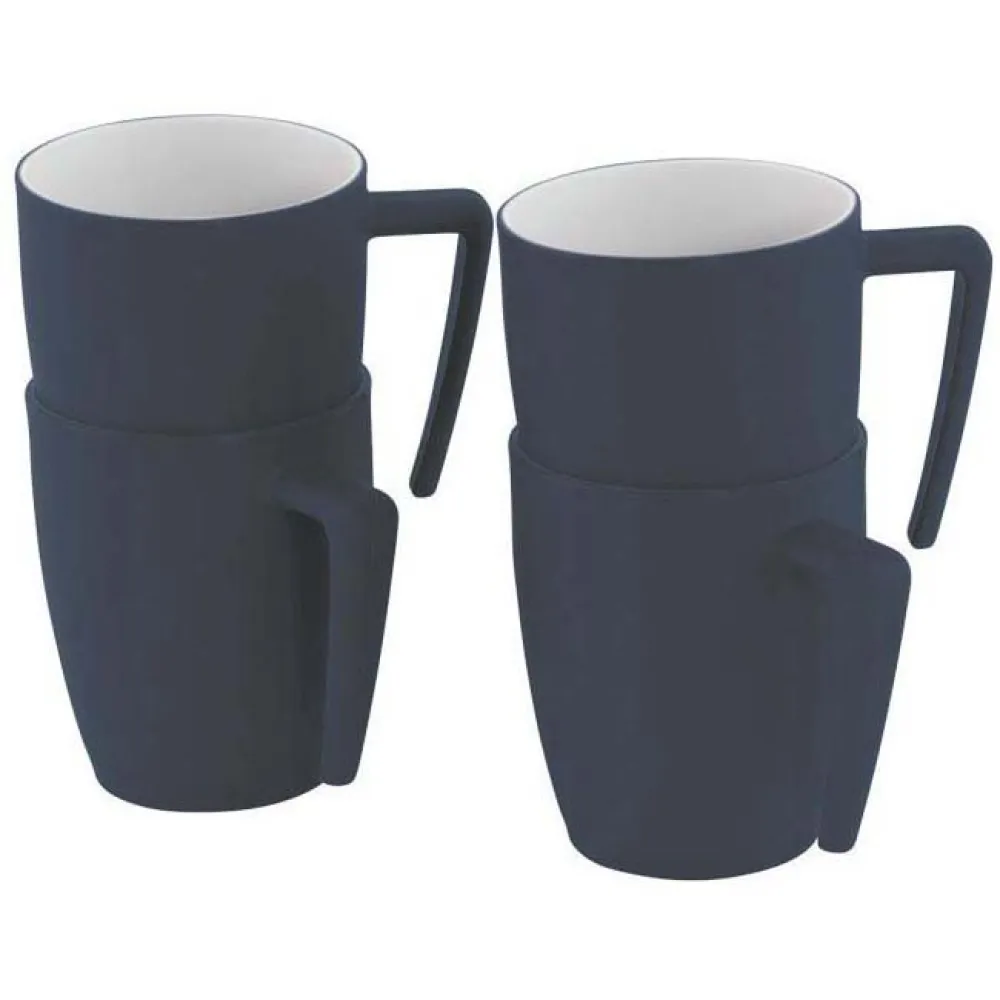 The mugs come in an elegant navy blue color and are made from durable, lightweight materials, making them easy to pack and carry.