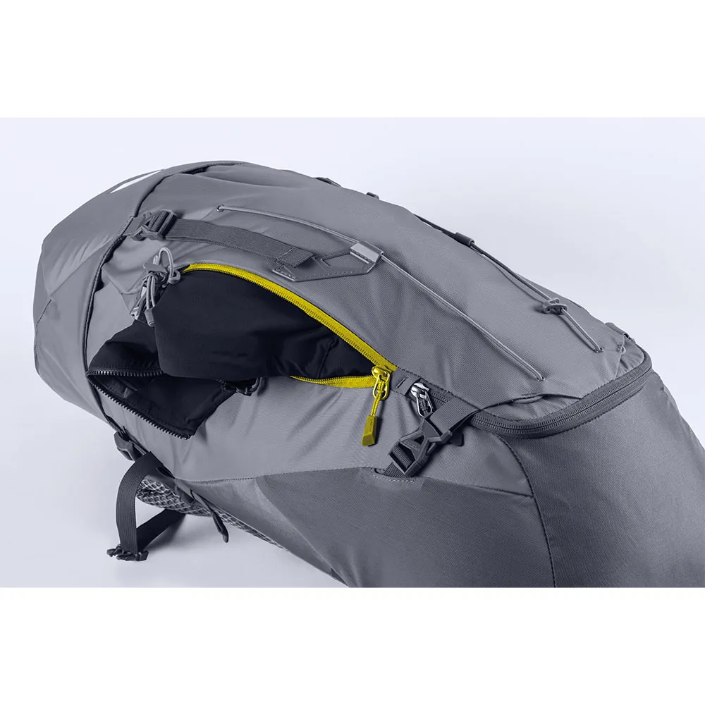 The SALEWA Alp Mate 36L is the ideal pack for medium alpine tours. Its cutting-edge Dry Back Air system features a suspended back panel, reducing body contact for superior ventilation to keep you cool and dry. Built from robust yet lightweight fabrics, it offers exceptional wrapping comfort with Split Shoulder Straps and an ergonomic hipbelt. Never rummage for gear again thanks to a top-loading lid and a U-shaped front zip for quick access. Complete with an integrated rain cover and hydration system compatibility, it’s engineered for comfort and reliability on the trail
