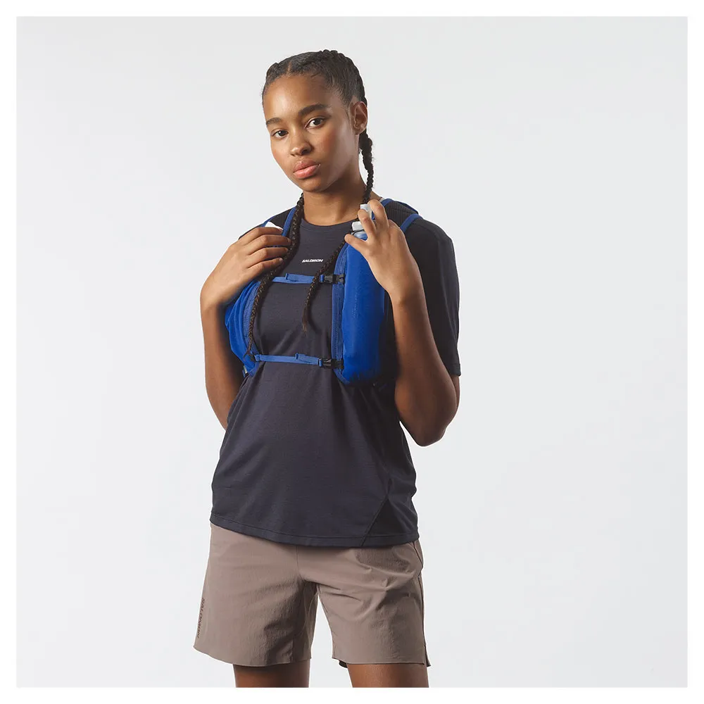 Feel light and fast on any adventure with the SALOMON Cross 4L backpack. Inspired by iconic trail running packs, this ultra-stable vest alternative is perfect for carrying essentials when you run, hike, or bike. Its breathable, fitted design and intuitive double sternum straps ensure a bounce-free fit without weighing you down. Stay hydrated on the move with two front pockets for 500ml soft flasks and a separate compartment compatible with a 1.5L bladder. The 4L of optimized storage, including secure pockets and a large side opening, keeps everything you need in easy reach