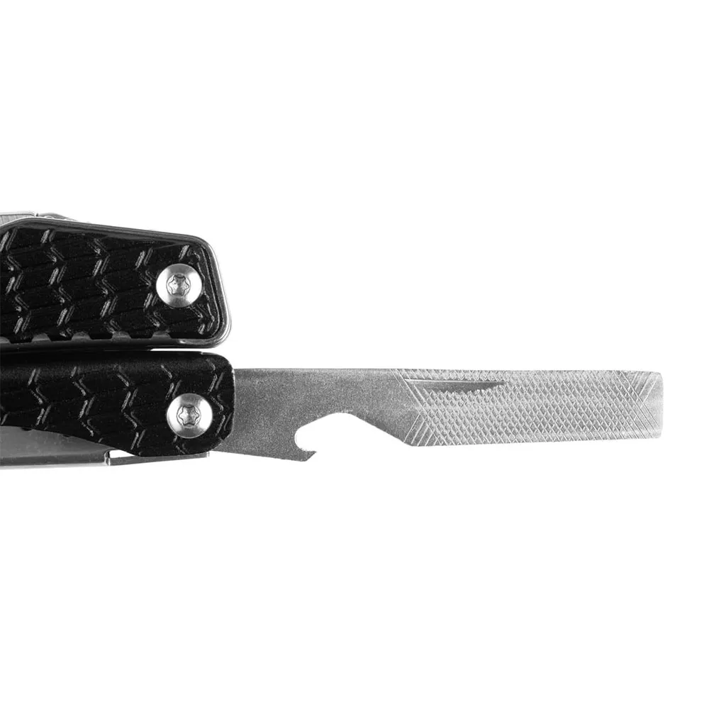 Equipped with a versatile array of essential functions, the Schrade Clench is one of the most practical Multitools on the market. The core of the tool is a powerful set of needle-nose pliers, perfect for gripping, bending, and reaching into tight spaces, complete with integrated wire cutters for electrical or gear repair tasks. It also features a sharp fine-edge knife blade for clean cuts and a separate serrated blade for effortlessly slicing through cordage and fibrous materials. The tool selection is rounded out with a Phillips screwdriver, multiple flathead screwdrivers, a can opener, a bottle opener, a durable file, and a piercing awl, ensuring you have the right implement for nearly any situation you might face in the great outdoors or around the home.
