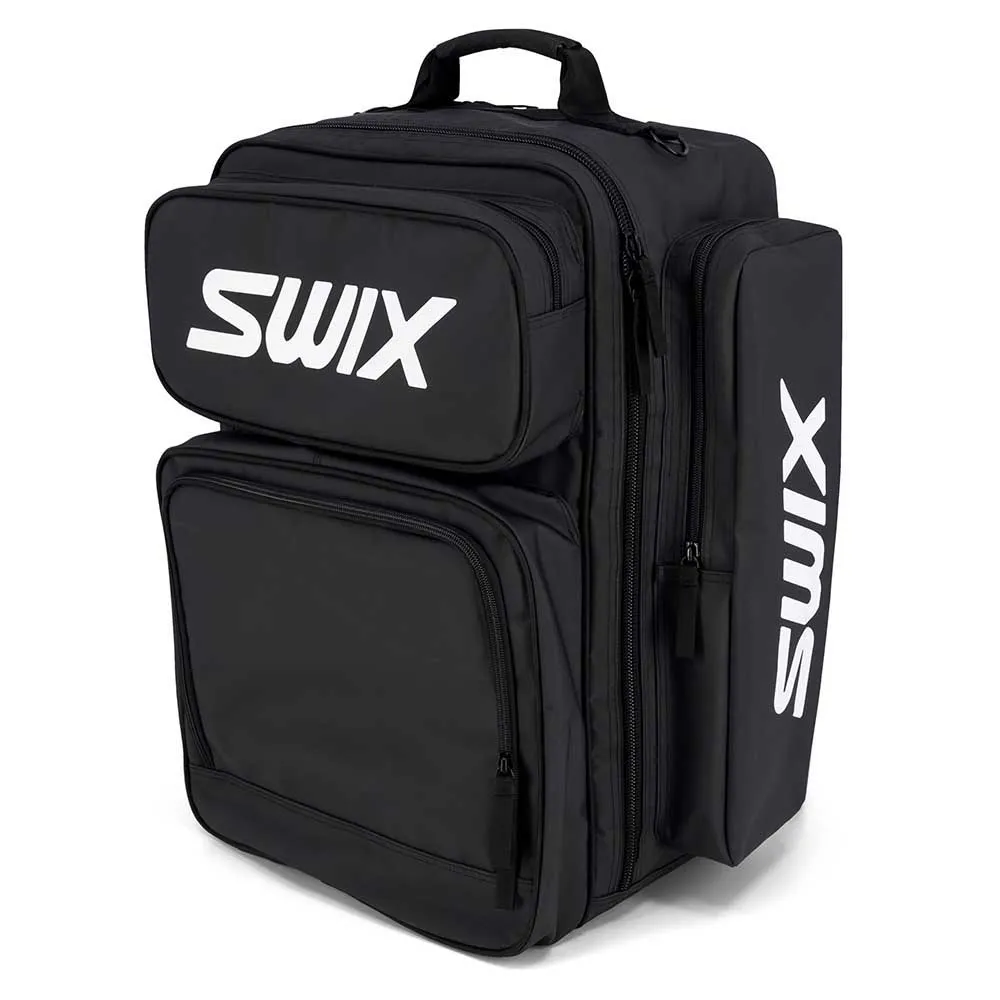 70 liter pack made from a waterproof tarpaulin fabric with six storage compartments and padded base.