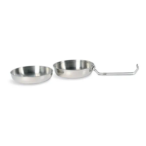 I'm gaga about my tatonka cooking set! I first tested the 800ml mug with lid that can be stored with nalgene for my wood stove and then I completed my set with this pan/plate that I use on the wood stove. I fry my vegetables in it and prepare pancakes for breakfast. Obviously you need a little fat so that it doesn't stick. Easy to clean, easy to store. I love it !