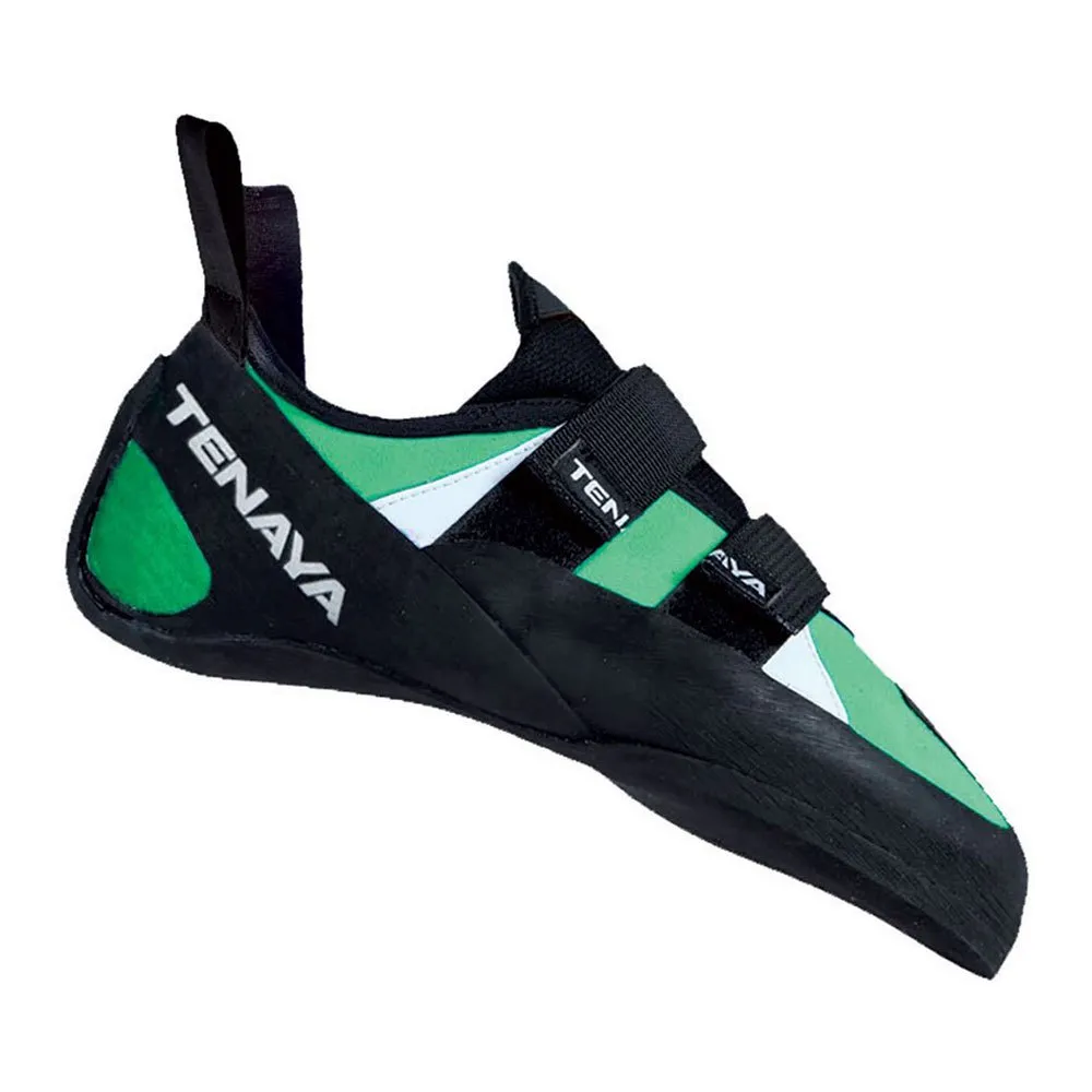 Discover the TENAYA Tanta, the perfect shoe to elevate your climbing. It combines exceptional comfort with high-performance features from top-range models, utilizing a slightly curved shape and M4 technology for a greater connection to the rock. The moderately downturned toe and velcro closure adapt to various foot widths, while the reinforced toe-box provides superior edging and durability. Ideal for long training days, the Tanta helps you place your feet with precision, letting you climb longer and improve your skills