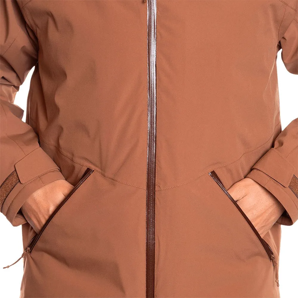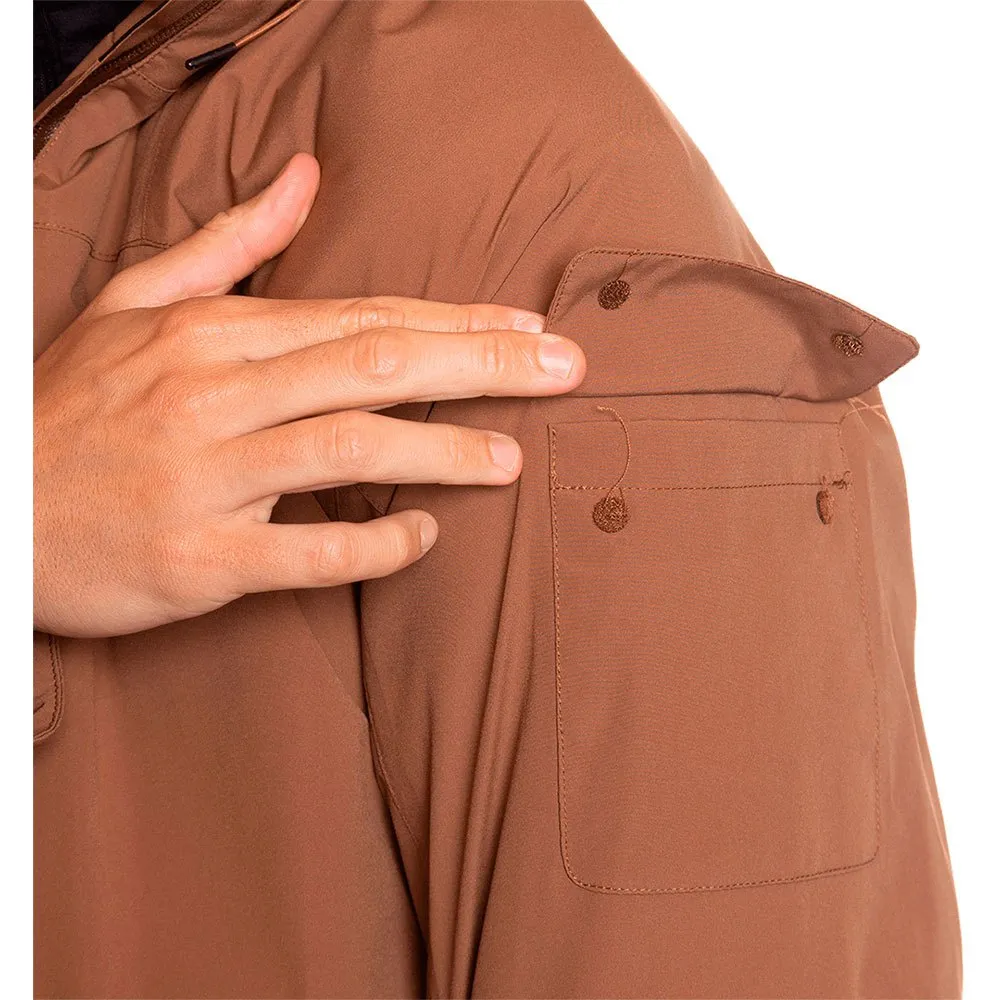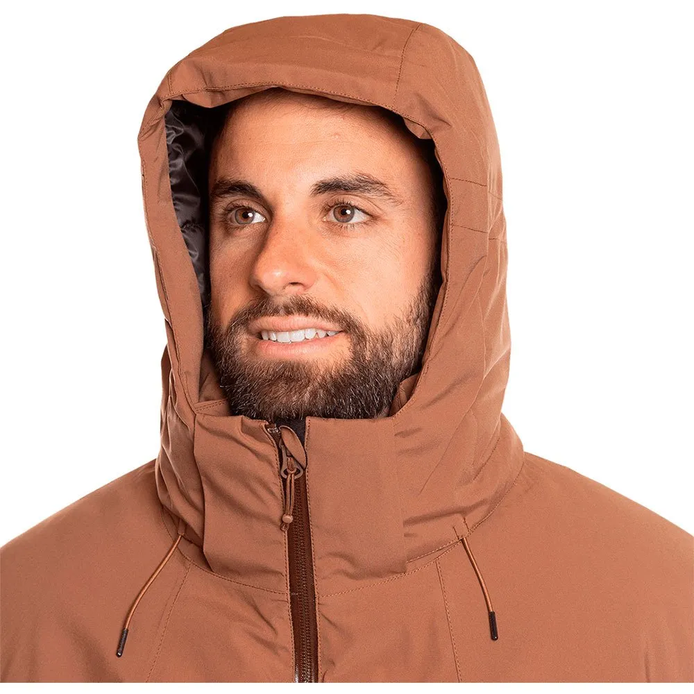 Detachable hood with zip · Hood facial and volume adjuster · Sealed seams · Waterproof zips · Waterproof and breathable membrane · Adjustable hem with elastic cord and stoppers · Soft fiber thermal insulating · Zip front pockets · Inner zip pocket.