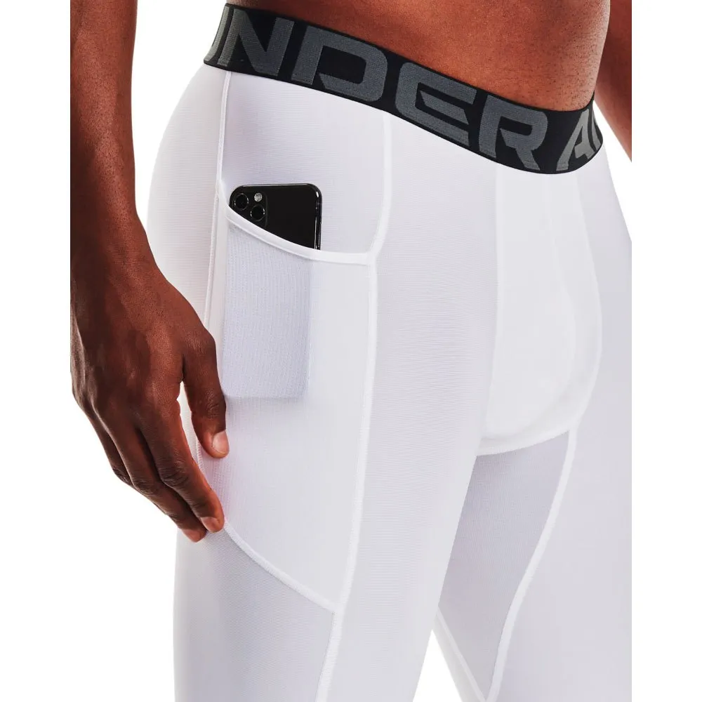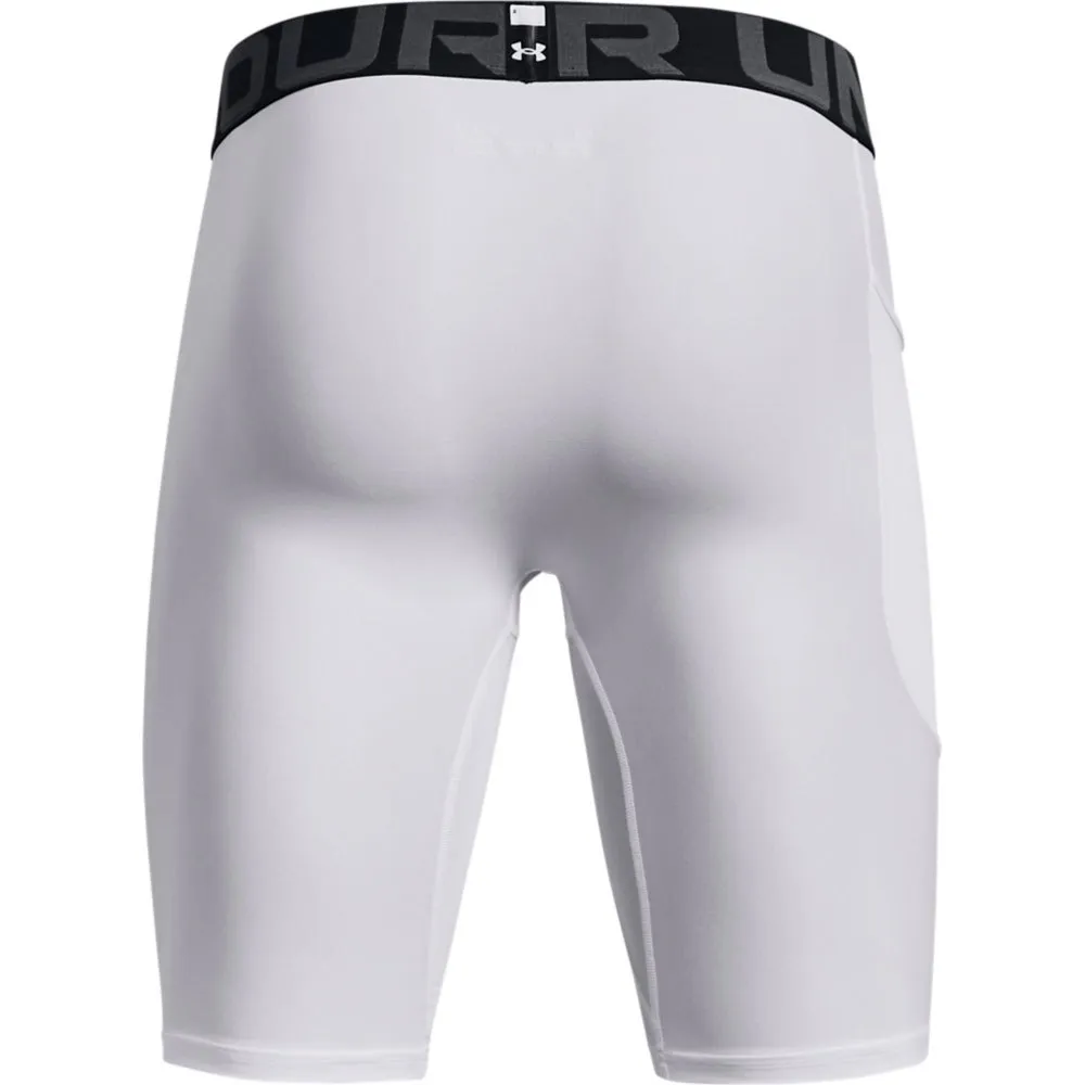 Designed for the modern athlete, these shorts feature a wide, exposed elastic waistband with a bold wordmark detail for a secure, comfortable fit that stays locked in place. A convenient, updated drop-in Strength Pocket™ on the right side offers easy, secure storage for your phone or other small essentials. Whether you´re hitting the gym, the field, or the track, the UNDER ARMOUR HeatGear® Compression Long Shorts are your essential performance advantage.