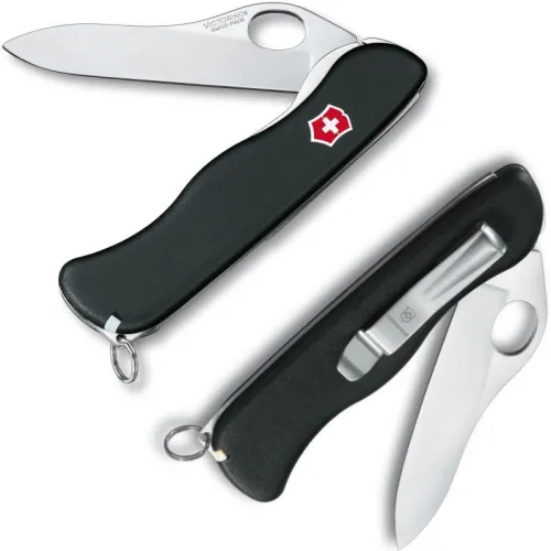Its double wave profile guarantees a very good grip.The Sentinel One Hand Clip Victorinox Swiss knife in detail:The Victorinox Sentinel One Hand knife is equipped with a reliable belt clip: