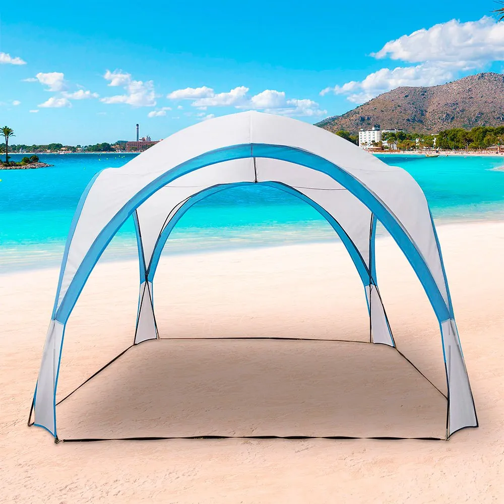 Este refugio solar ligero y portátil ofrece un valor inigualable. Los clientes elogian su buena calidad y gran tamaño, señalando que es fácil de montar. Su diseño es altamente resistente al viento, soportando vientos fuertes mejor que los toldos cuadrados típicos. También es impermeable, lo que lo convierte en una opción versátil y fiable para proporcionar sombra en la playa o como extensión de una tienda de campaña