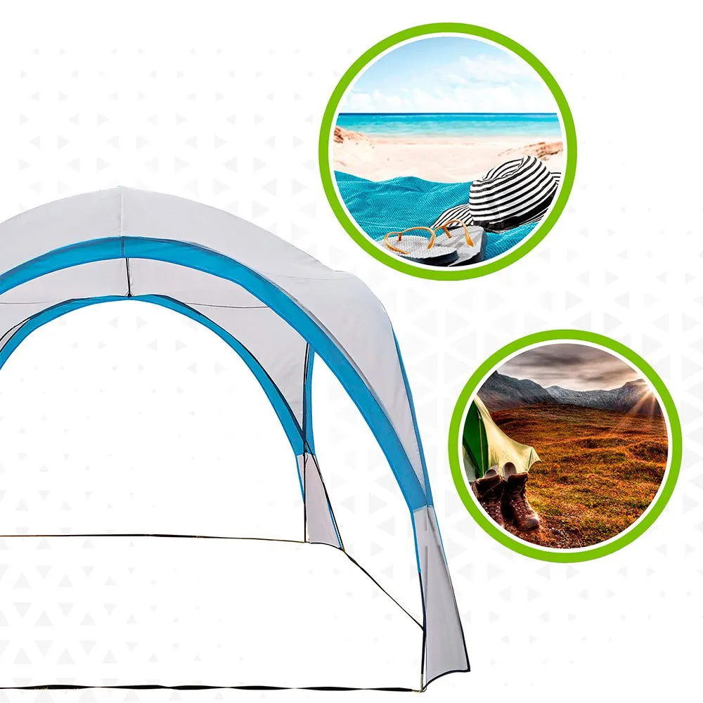 Esta carpa plegable es de fácil montaje con estacas y cuerdas para fijar al suelo y pesa 4,7 kg para transportar con facilidad.