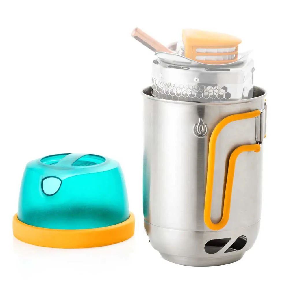 Cocine comidas, hierva agua y prepare café con este sistema de cocción rápido. Diseñado para usarse con el BioLite CampStove, el KettlePot cocina como una olla y vierte como una tetera, mientras que el CoffeePress incluido ofrece una preparación al estilo de una prensa francesa. Cuando no está en uso, KettlePot funciona como un estuche rígido para su CampStove, ahorrando espacio en su mochila y ofreciendo protección adicional.