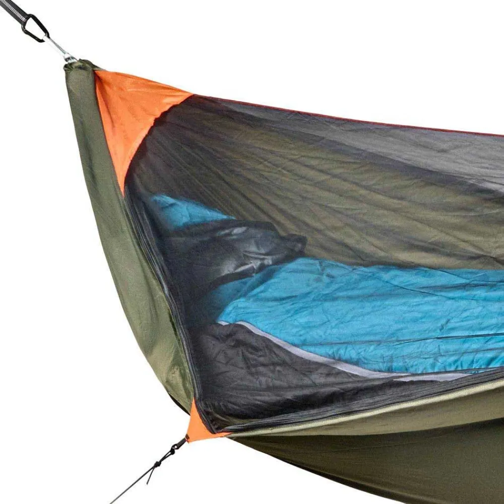 Hamaca ligera para 1 persona,con 4 esquinas reforzadas, pensada para ususarios que buscan ligereza, rapidez y tecnicidad en el camping, el trekking o cicloturismo.