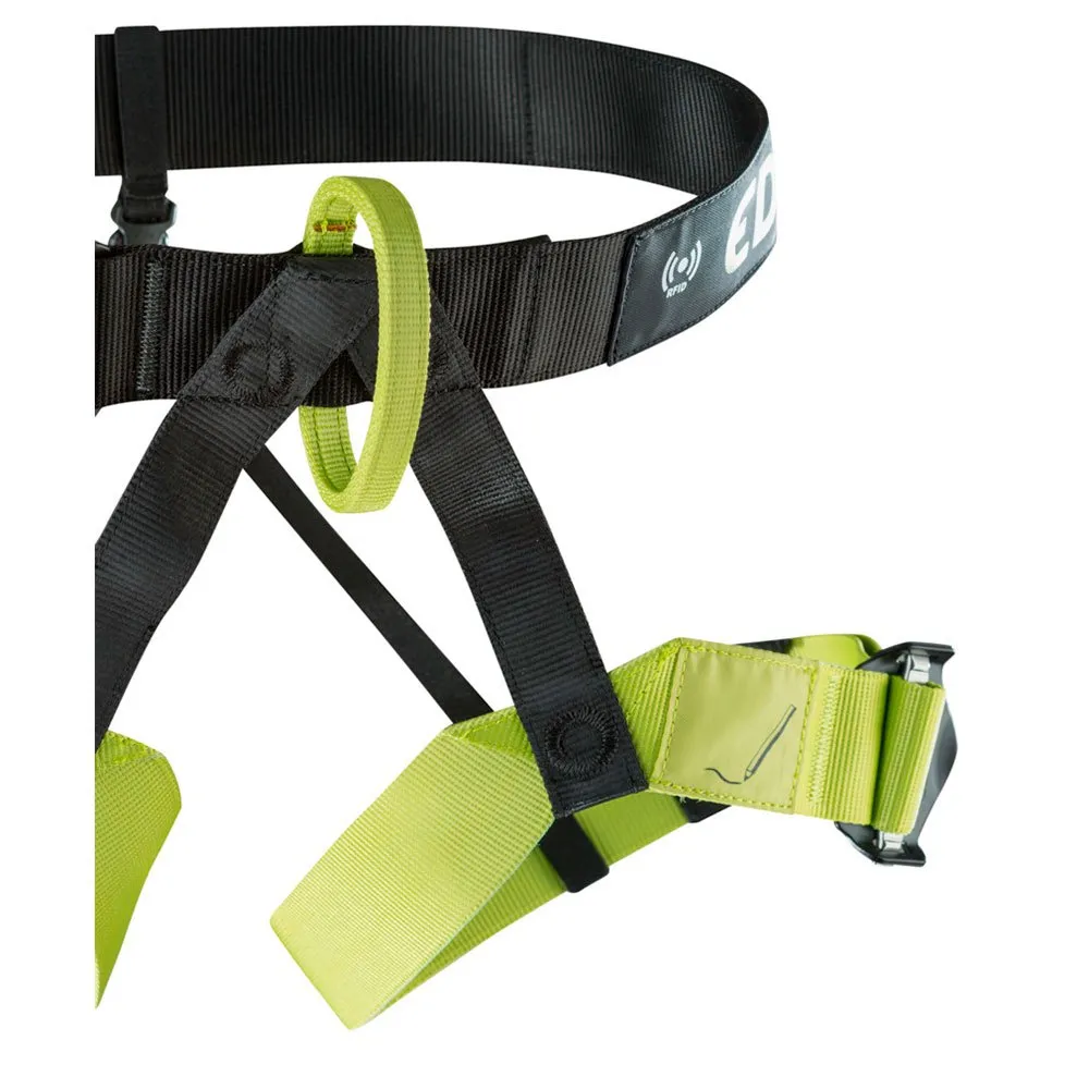 Las marcas de bucle de pierna derecha / izquierda y las correas de bucle de pierna elásticas y fijas facilitan la colocación correcta del arnés.