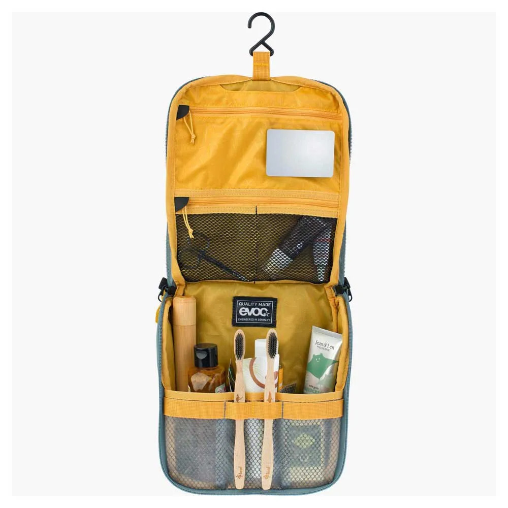 El práctico gancho te permite colgar esta bolsa de esponjas en cualquier lugar, en tu cabaña de esquí o simplemente en el árbol más cercano. Ofrece un amplio espacio y opciones de división individual, así como un espejo en el interior de la tapa, para que puedas terminar incluso el día más complicado limpio y con estilo.