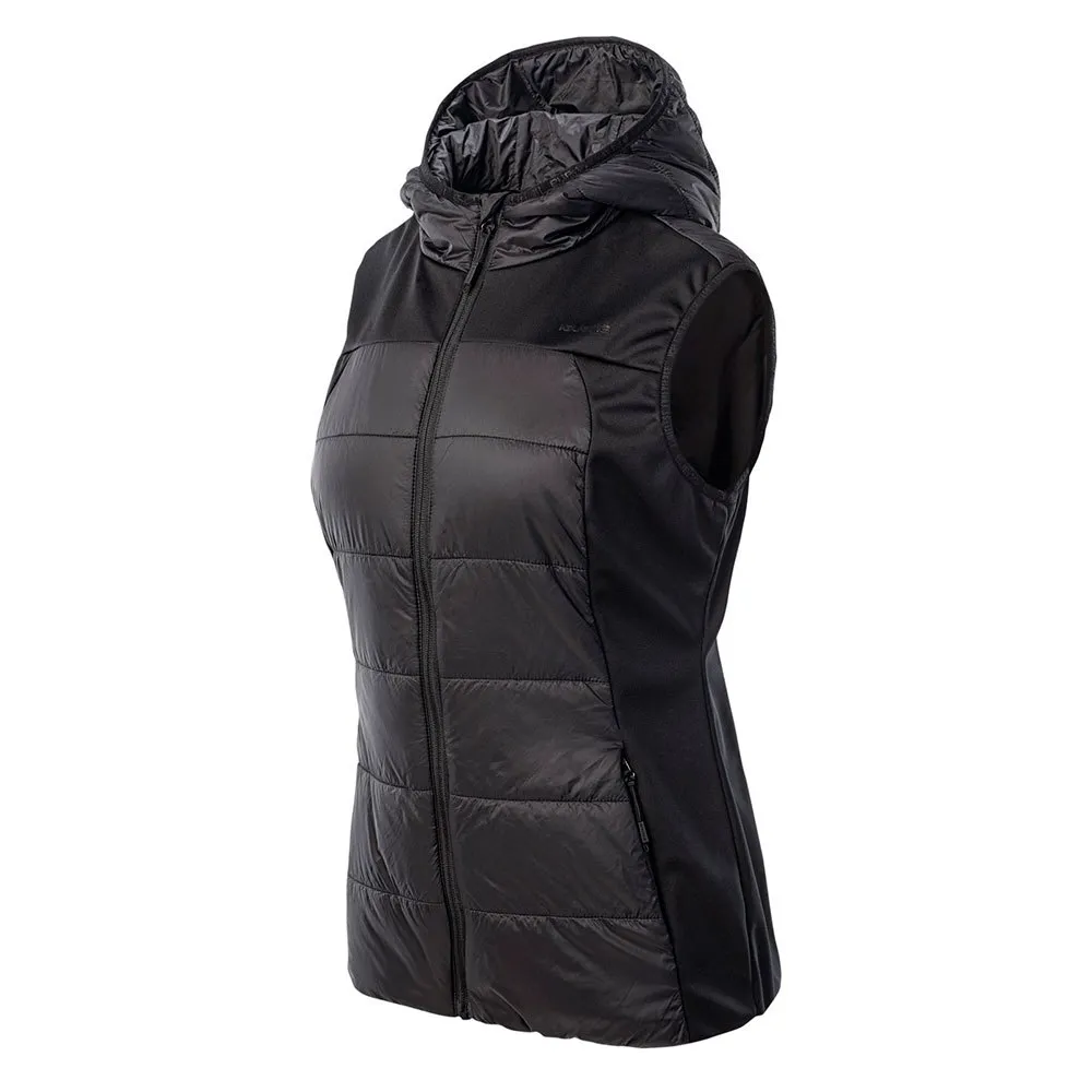 La libertad de movimiento es esencial. El diseño sin mangas del chaleco Loanna permite un rango completo de movimiento de brazos, lo que lo hace perfecto para actividades como correr, hacer trekking o caminar nórdico. Su corte entallado y femenino favorece la silueta sin sentirse restrictivo, permitiendo una fácil superposición sobre un forro polar o una camiseta de manga larga. El chaleco cuenta con una capucha integrada, cuidadosamente diseñada, que ofrece refugio inmediato contra vientos cortantes y lluvias ligeras inesperadas, añadiendo una capa crucial de protección cuando más la necesitas.
