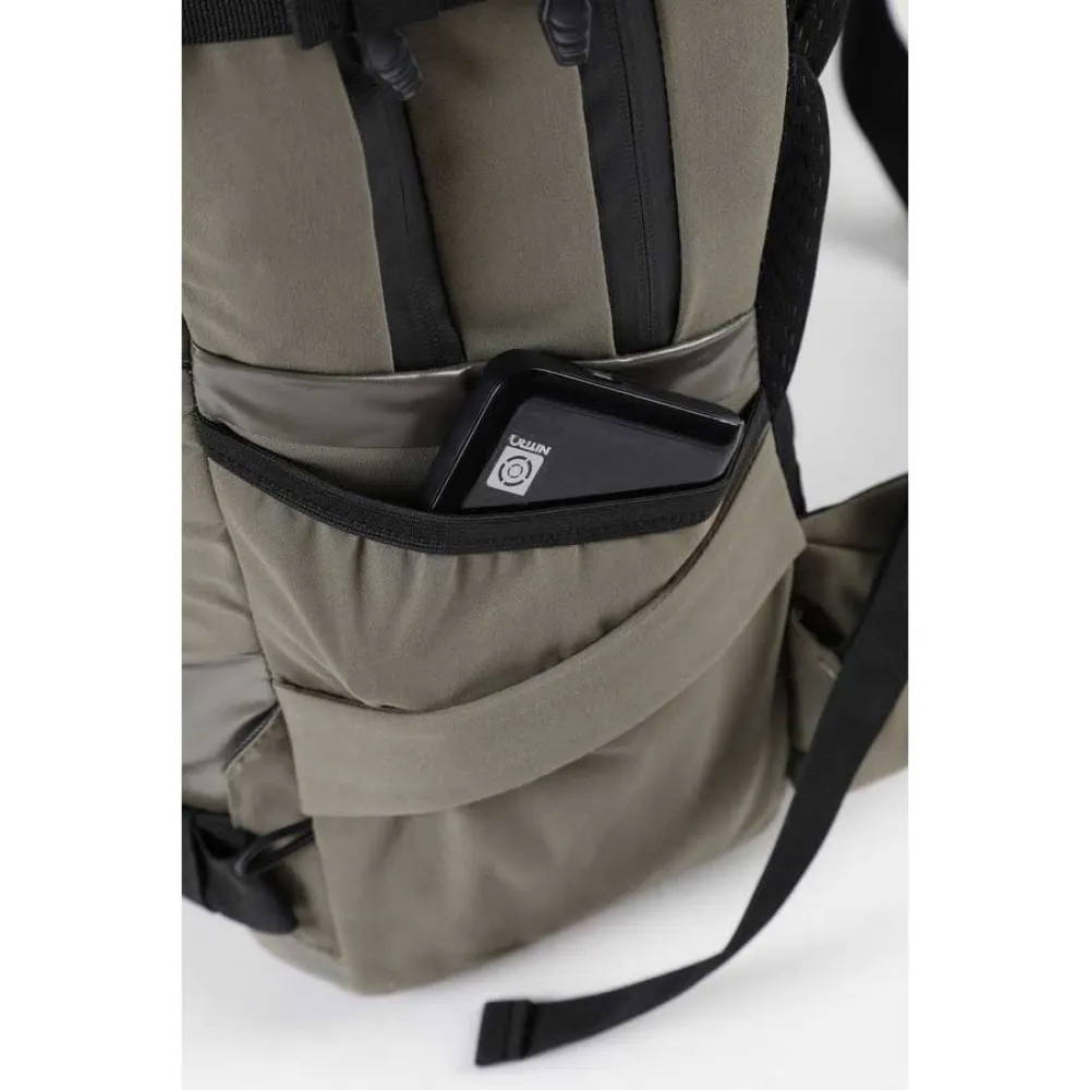 - Fijación externa para bastones de senderismo y bucles para equipo
