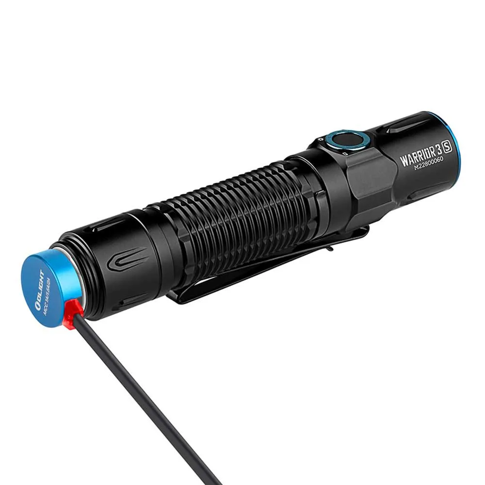 La linterna LED OLIGHT Warrior 3S en negro es una herramienta de iluminación potente y versátil diseñada para uso táctico. Con una salida máxima de 2300 lúmenes, esta linterna es capaz de proporcionar iluminación de largo alcance y amplia área. Cuenta con varios niveles de brillo y un modo estroboscópico para situaciones de emergencia.