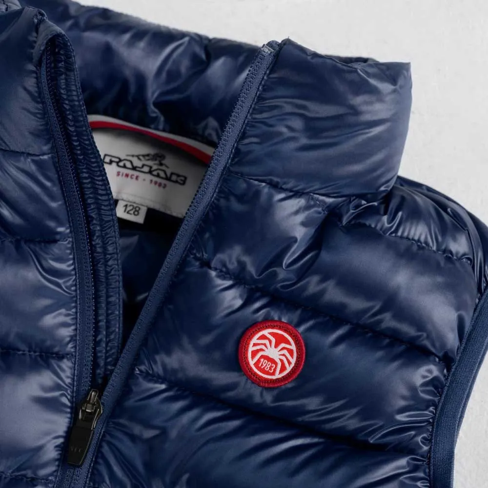 - CASPER es un chaleco versátil que proporciona calor cuando más se necesita y permite que los niños se sientan ligeros y libres. Su característica destacada es el relleno natural de plumón de ganso blanco polaco con un poder de relleno de 700 pulgadas cúbicas, uno de los mejores aislantes naturales del mundo. Encerrado en cámaras especialmente diseñadas en forma de X, el plumón se mantiene en su lugar, lo que evita la migración y elimina los puntos fríos. Este increíble aislamiento mantiene a tu hijo abrigado sin importar el clima.
