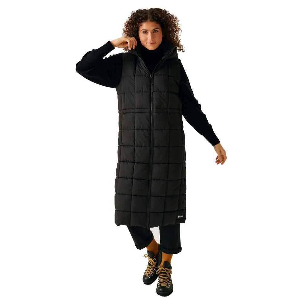 Súper elegante y cálido, nuestro chaleco Leandra para mujer es una excelente opción para vestir en capas. Confeccionado con tejido de melocotón repelente al agua, este chaleco largo ofrece una protección duradera. El frío se mantendrá a raya con el aislamiento de plumón sintético premium sin plumas de peso medio. El lujoso forro de piel sintética añade un toque de elegancia. Acabado con un bolsillo de seguridad interno con cremallera.