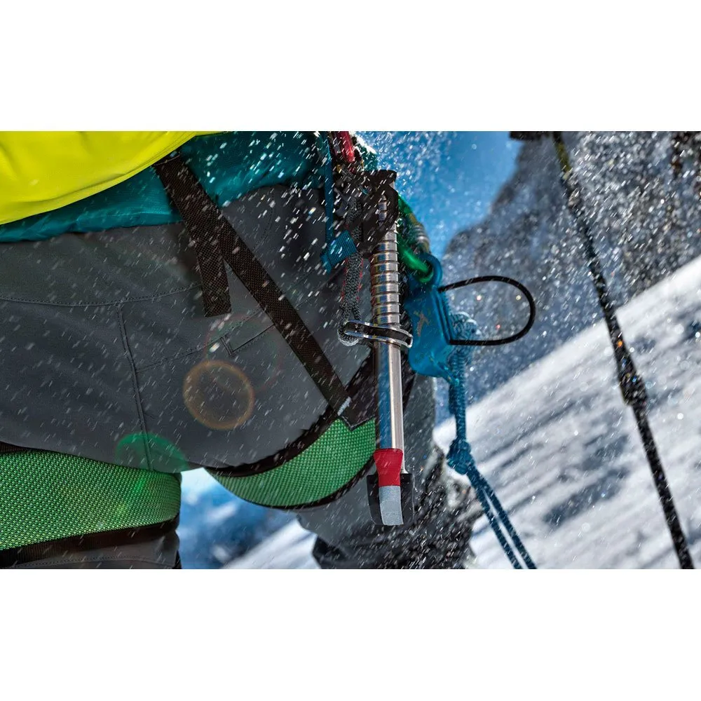 Este innovador tornillo de hielo cuenta con una cinta exprés integrada, lo que lo hace ligero y ahorra espacio en el portamaterial. Su ingeniosa tapa de punta protege el equipo de la punta afilada. Los usuarios alaban su operación rápida y sencilla con una sola mano, gracias a una cabeza ergonómica y una palanca de accionamiento rápido. Este tornillo fuerte y fiable es excelente para construir anclajes de hielo, ofreciendo un diseño práctico y seguro. La calidad de su construcción y sus materiales proporcionan confianza a cualquier escalador de hielo